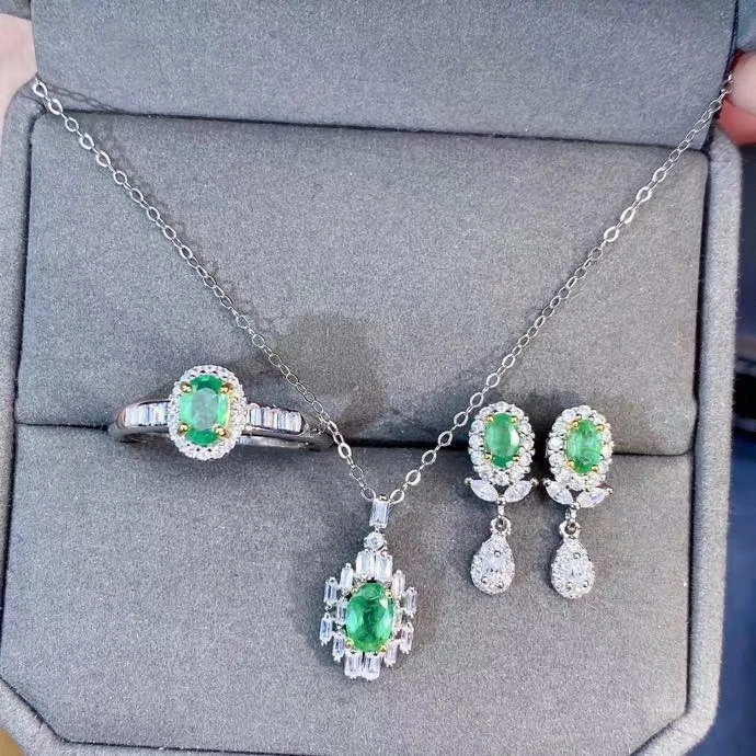 Special Offer KJJEAXCMY غرامة مجوهرات الطبيعية الزمرد 925 فضة نوبل فتاة قلادة قلادة أقراط للأذن على شكل سلسلة حلقة مجموعة دعم اختبار Discount 34% Today!