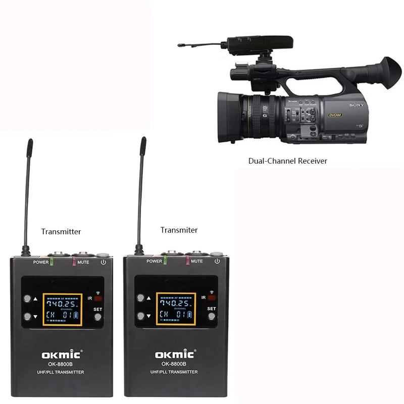 Product Name: مزدوجة القناة UHF ميكروفون لاسلكي نظام لكانون نيكون سوني باناسونيك DSLR كاميرا و كاميرا OK-7002R + 8800B
