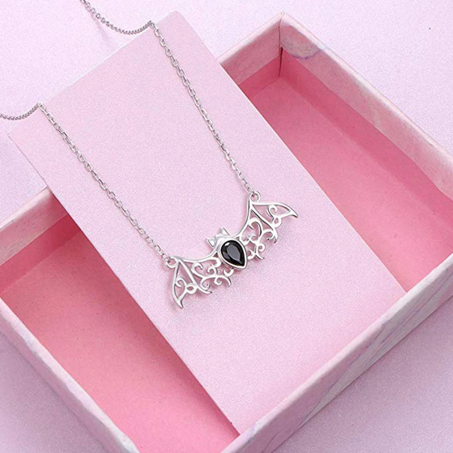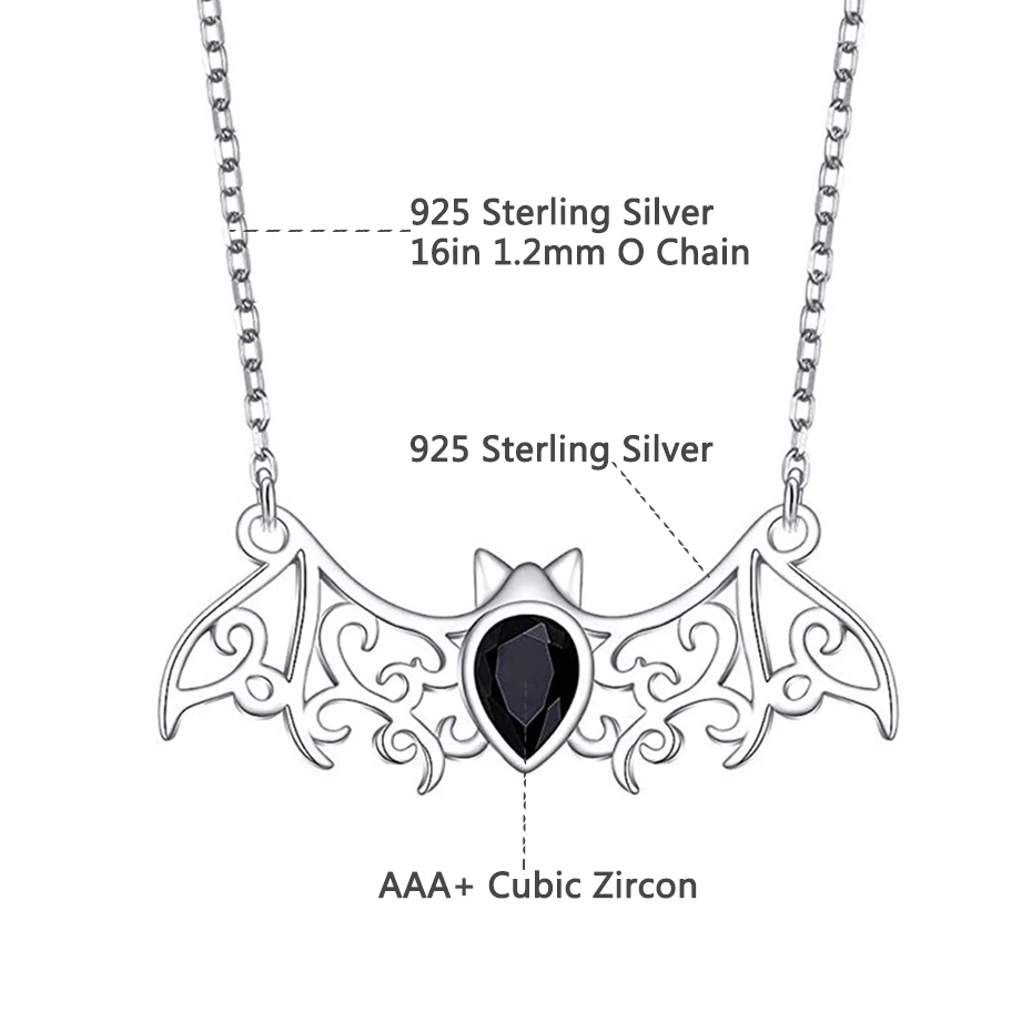 Product Name: YFN 925 فضة الخفافيش قلادة الأسود كريستال عقد من حجر الياقوت قلادة فضية سلسلة المرأة 925 للمجوهرات العصرية امرأة الهدايا