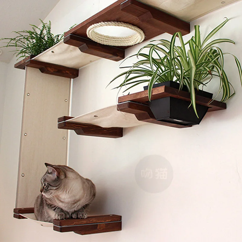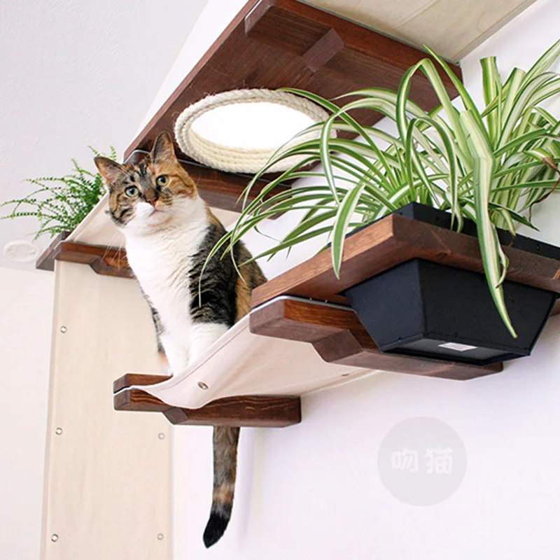 Special Offer إطار تسلق قطة من خشب متين ، فضلات القطط ، منصة القفز على شكل قطة ، سرير للقطط مثبت على الحائط ، راحة وممتعة Discount 30% Today!