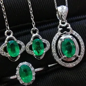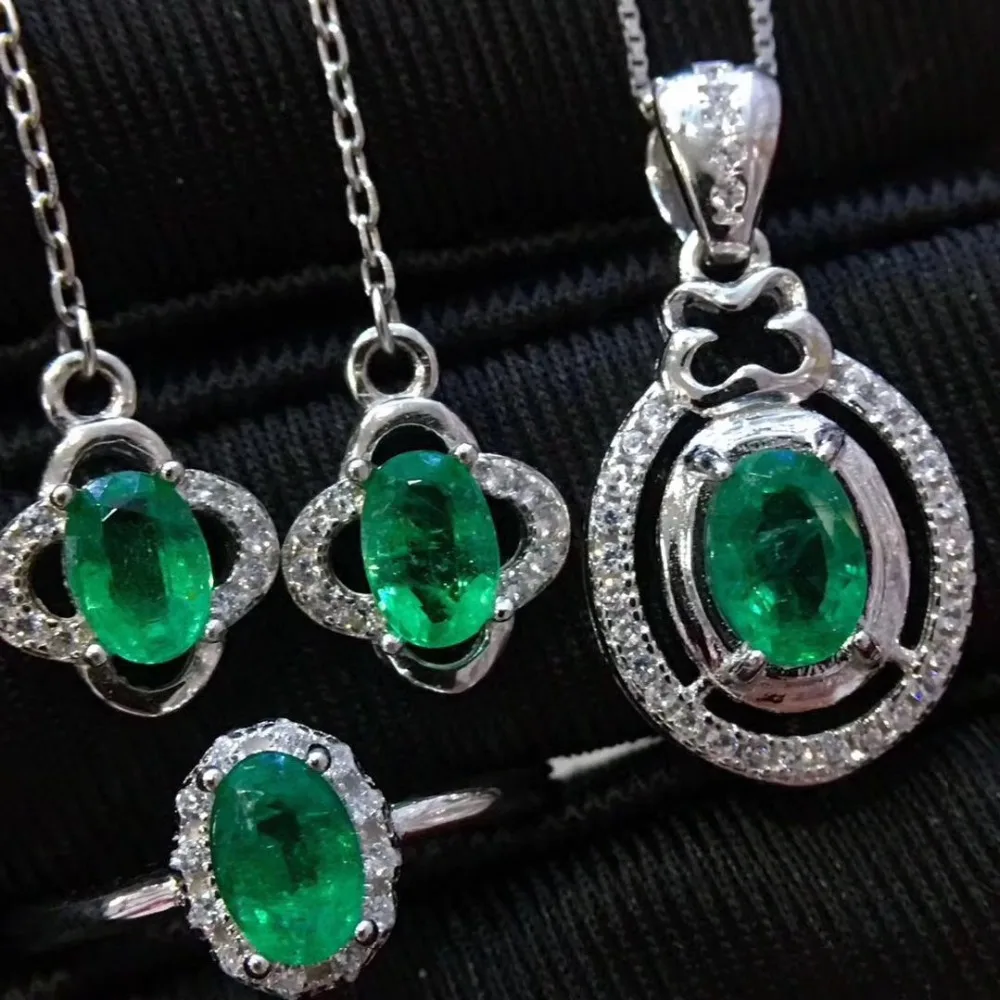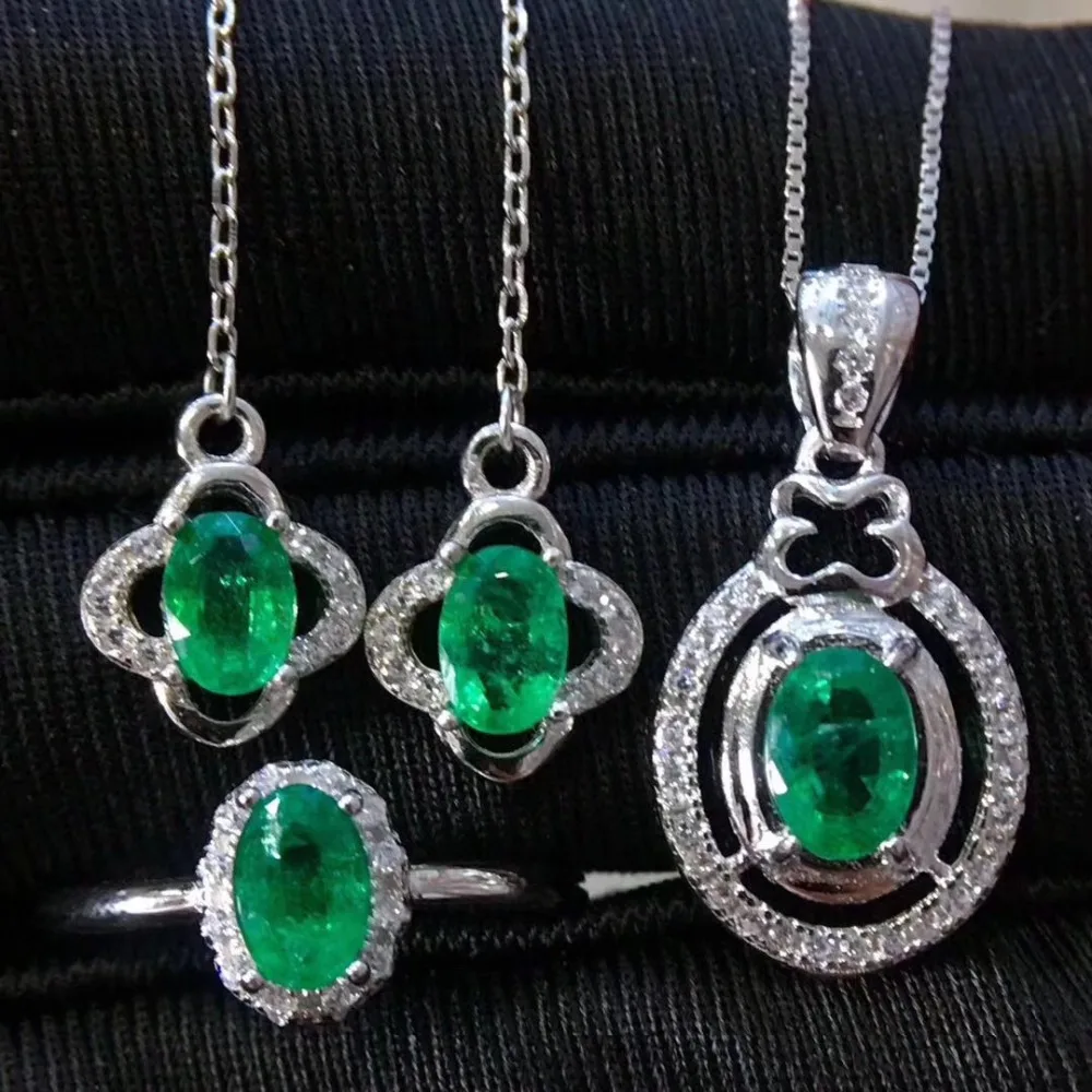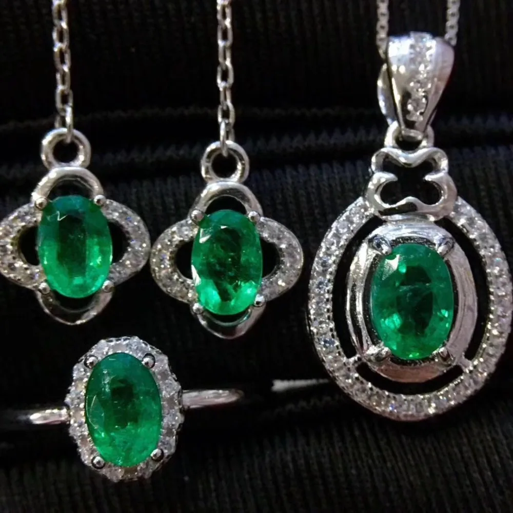 Product Name: طقم مجوهرات الزمرد الطبيعية والحقيقية الطبيعية ريال الزمرد 925 فضة 1 قطعة قلادة ، 1 قطعة خاتم ، 2 قطعة القرط