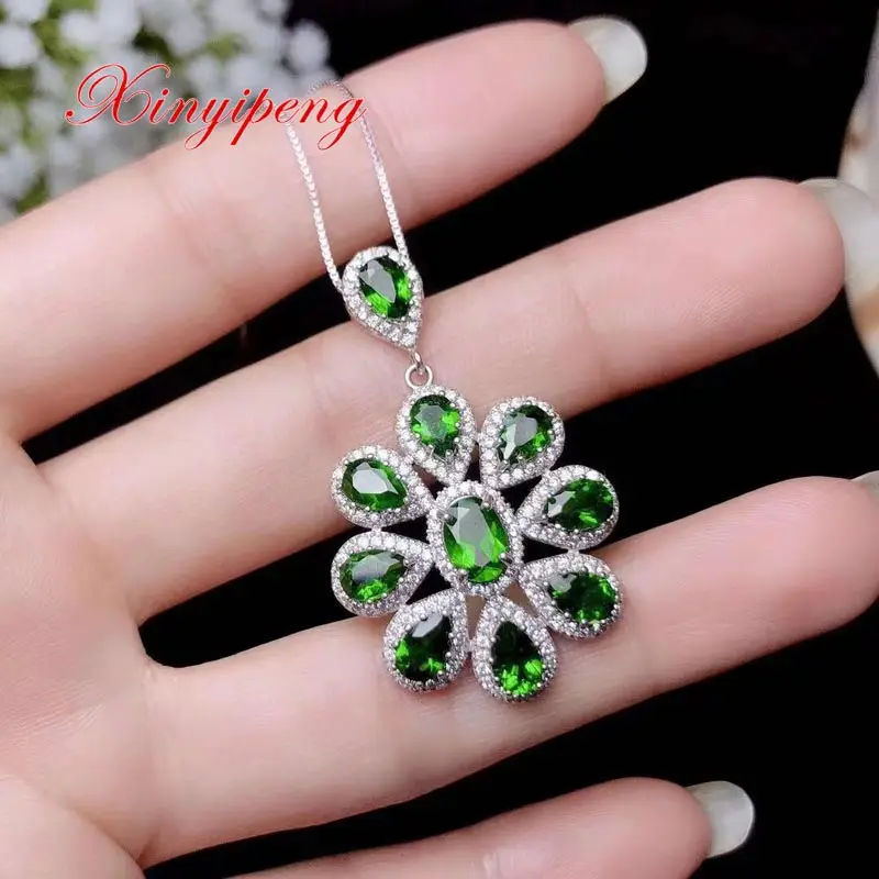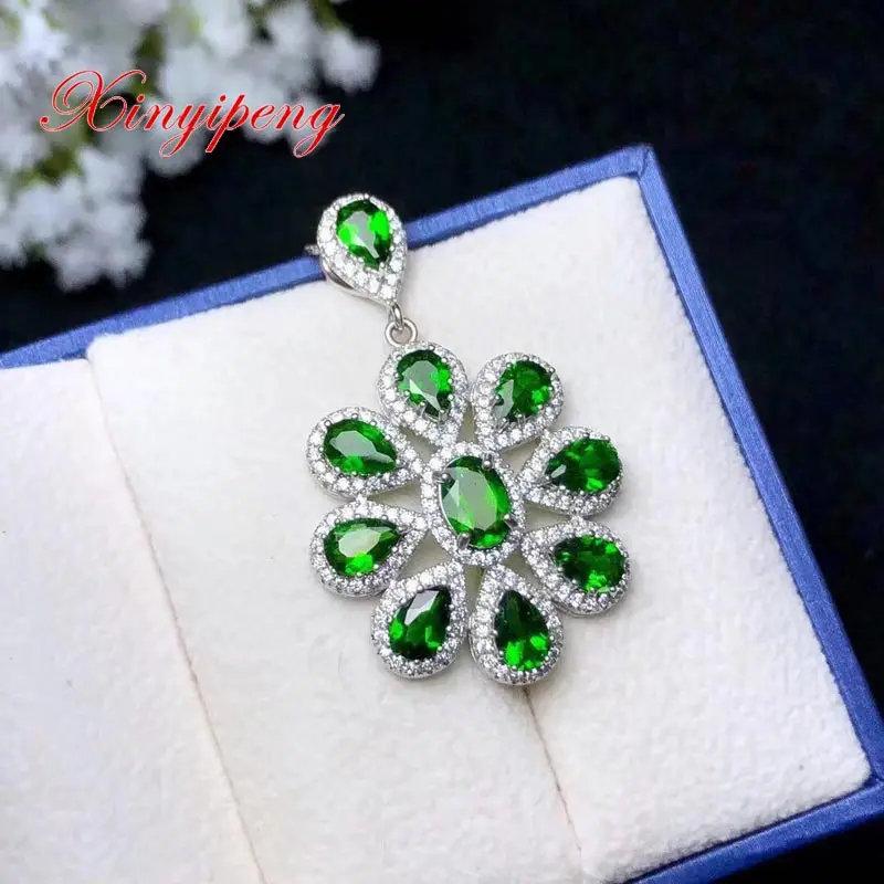 Special Offer شين يي بنغ 925 الفضة مطعمة الطبيعية ديوبسيدي قلادة امرأة قلادة جميلة Discount 11% Today!