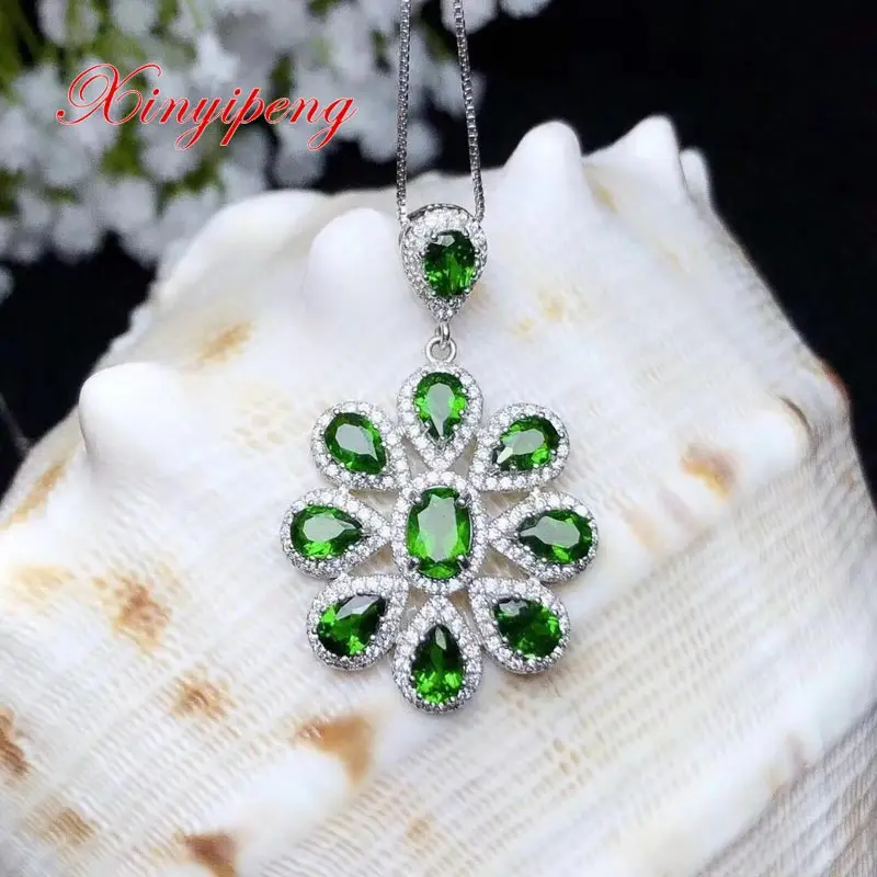 Product Name: شين يي بنغ 925 الفضة مطعمة الطبيعية ديوبسيدي قلادة امرأة قلادة جميلة