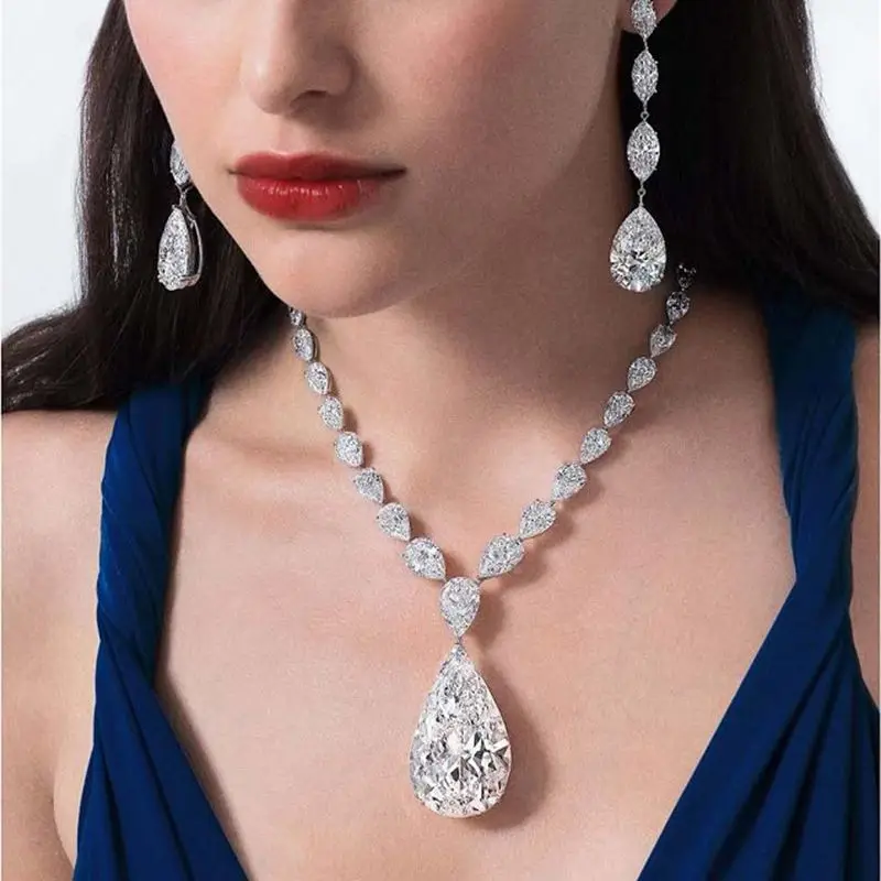 Product Name: شيبيه الفاخرة 925 فضة الجشع مويسانيتي قطرة الماء الماس الزفاف غرامة مجوهرات الخطوبة قلادة قلادة
