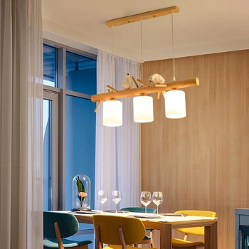 Special Offer تصميم الطيور مصباح للمطبخ غرفة الطعام الجدول مصباح قناديل خشبية الاطفال معلقة مصباح الشمال داخلي المنزل LED لمبات الخشب الأبيض Discount 0% Today!
