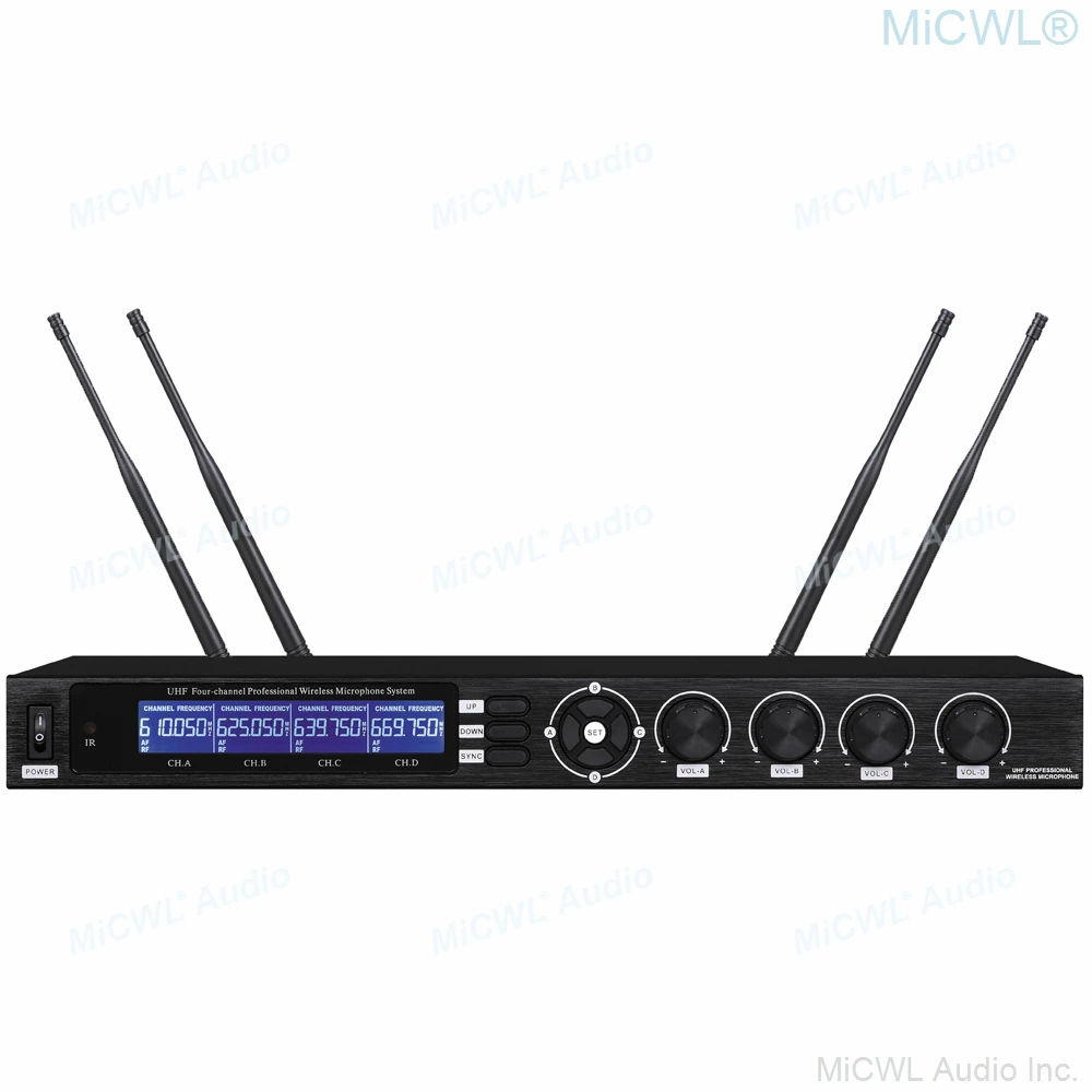 Product Name: ميكروفون لاسلكي من MiCWL ذو نظام صوتي UHF مزود بـ 4 أحزمة من Boday 4 Lavalier 4 سماعات ميكروفون كاريوكي بنظام الغناء والكلام قابل للتعديل