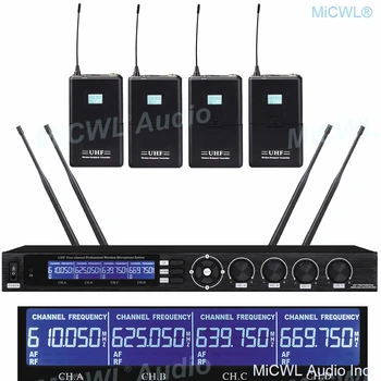 Special Offer ميكروفون لاسلكي من MiCWL ذو نظام صوتي UHF مزود بـ 4 أحزمة من Boday 4 Lavalier 4 سماعات ميكروفون كاريوكي بنظام الغناء والكلام قابل للتعديل Discount 12% Today!