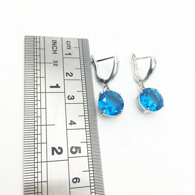 Product Name: جولة الأزرق اللون فضة مجموعات مجوهرات للنساء الزركون قلادة قلادة خواتم قطرة الأقراط شحن مجاني