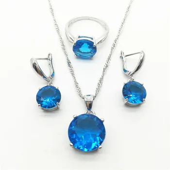 Special Offer جولة الأزرق اللون فضة مجموعات مجوهرات للنساء الزركون قلادة قلادة خواتم قطرة الأقراط شحن مجاني Discount 0% Today!
