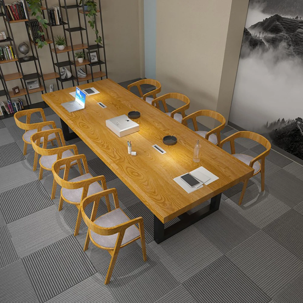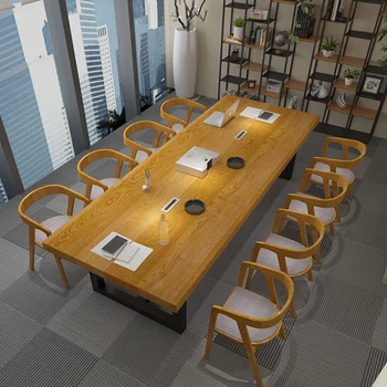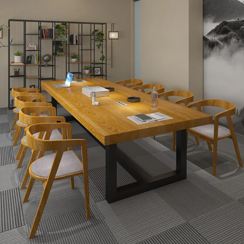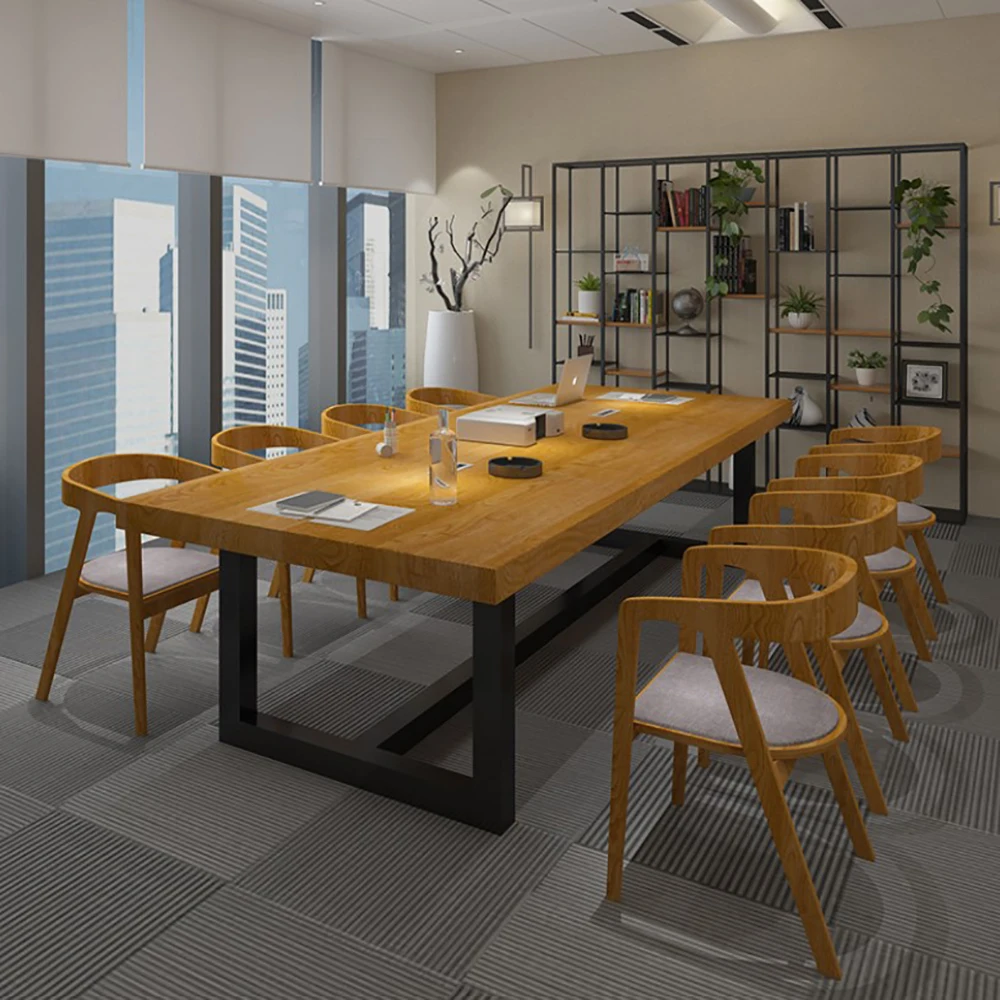 Special Offer الأمريكية لوفت خشب متين مكتب الرياح الصناعية الحديد كبير سميكة الطاولات الطويلة غرفة المؤتمرات طاولات مكتبية Discount 0% Today!