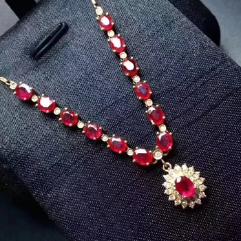 Special Offer الطبيعية الأحمر روبي جوهرة دائرة الكلاسيكية ديانا قلادة S925 فضة الاحجار الطبيعية قلادة النساء هدية الزفاف المجوهرات Discount 18% Today!