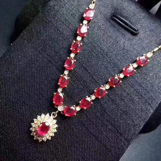 Product Name: الطبيعية الأحمر روبي جوهرة دائرة الكلاسيكية ديانا قلادة S925 فضة الاحجار الطبيعية قلادة النساء هدية الزفاف المجوهرات