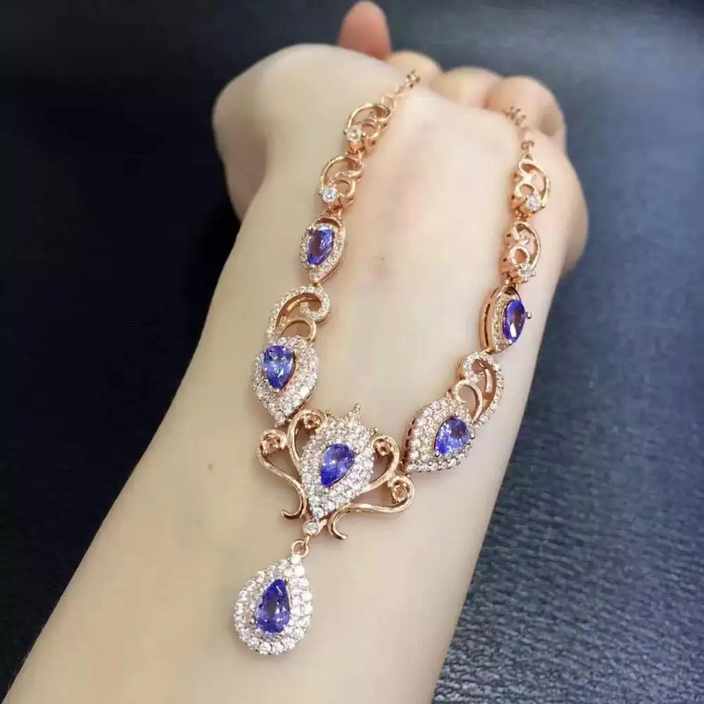 Product Name: جديد وصول ريال الطبيعية تنزانيت قلادة قلادة S925 فضة المرأة اللون الأحجار الكريمة والمجوهرات الطبيعية