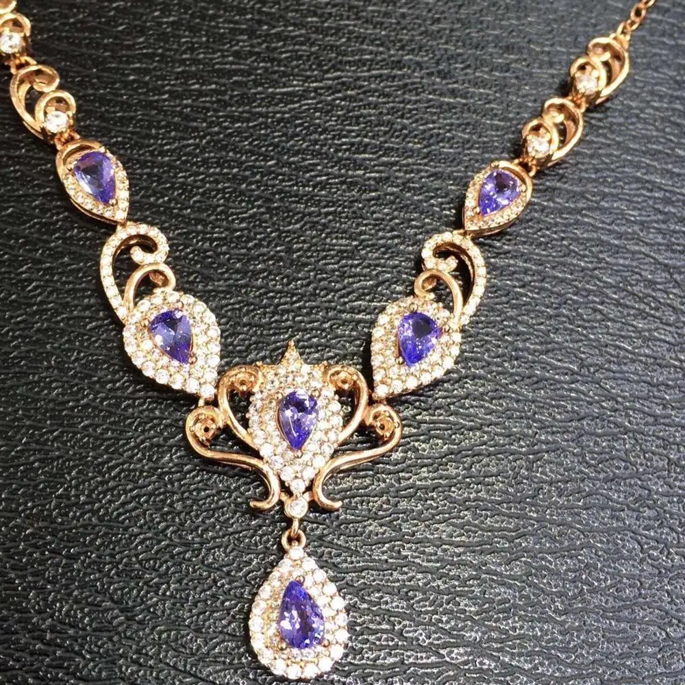 Special Offer جديد وصول ريال الطبيعية تنزانيت قلادة قلادة S925 فضة المرأة اللون الأحجار الكريمة والمجوهرات الطبيعية Discount 48% Today!