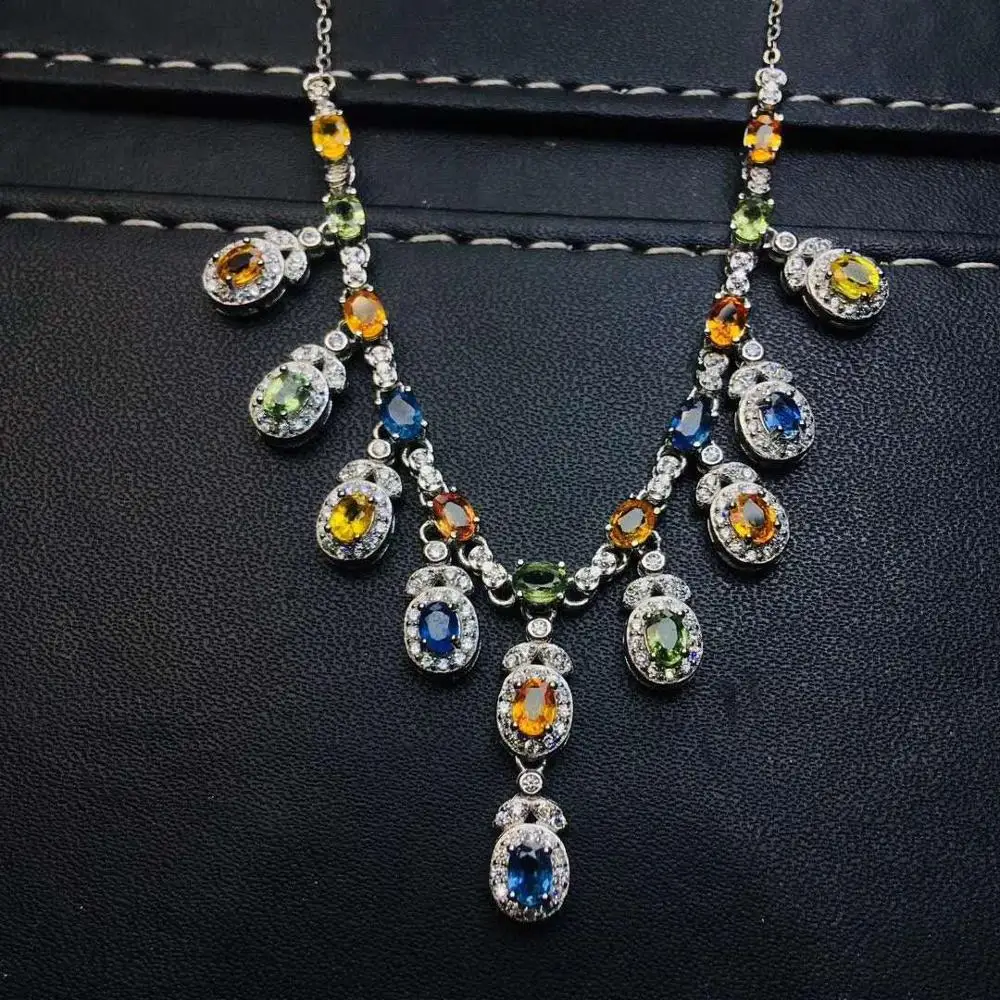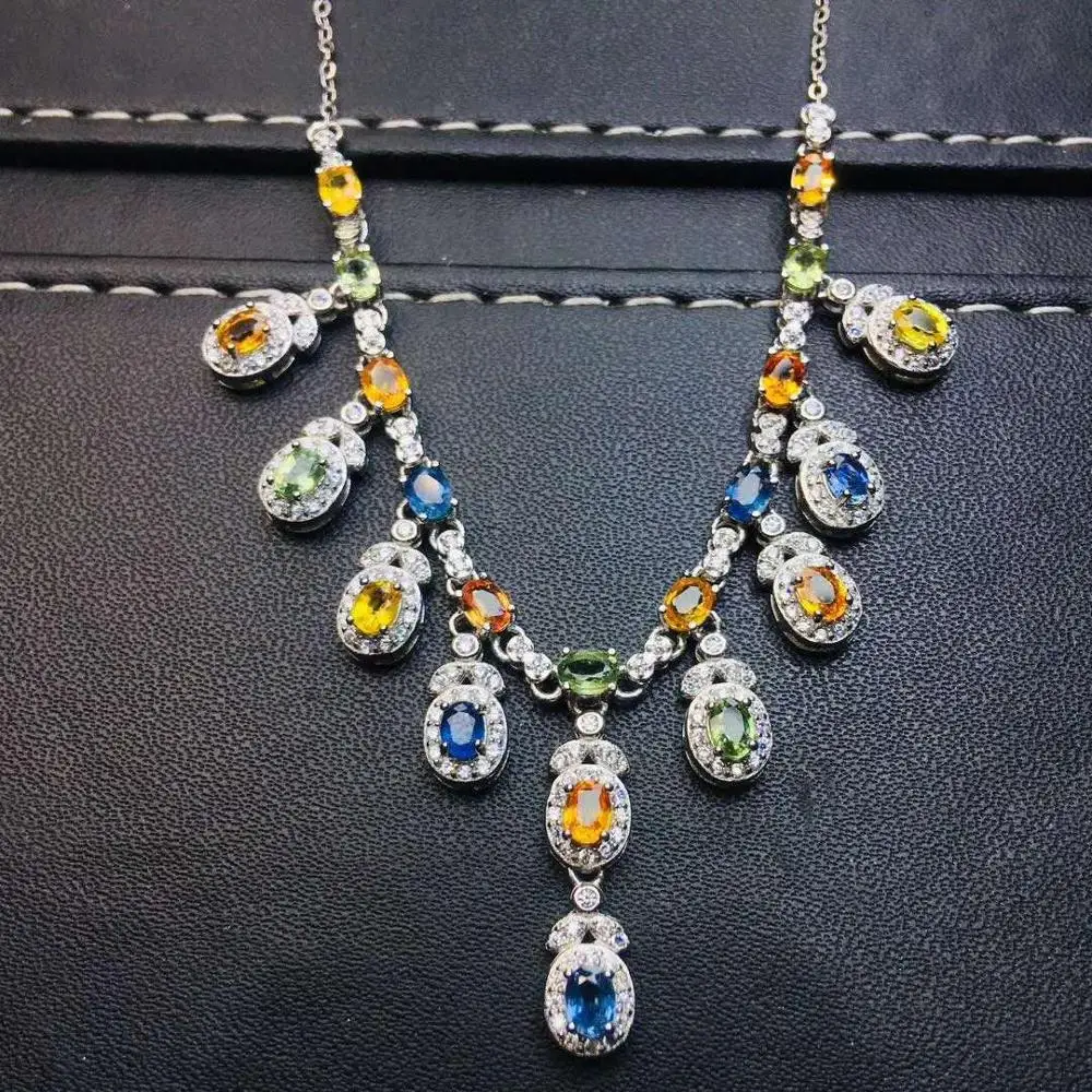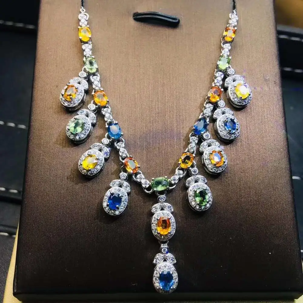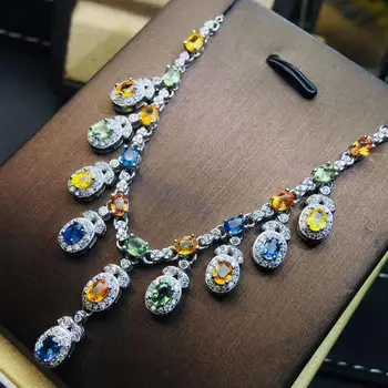Special Offer الملونة الطبيعية الياقوت الحقيقي قلادة قلادة الصلبة S925 فضة للنساء Discount 48% Today!