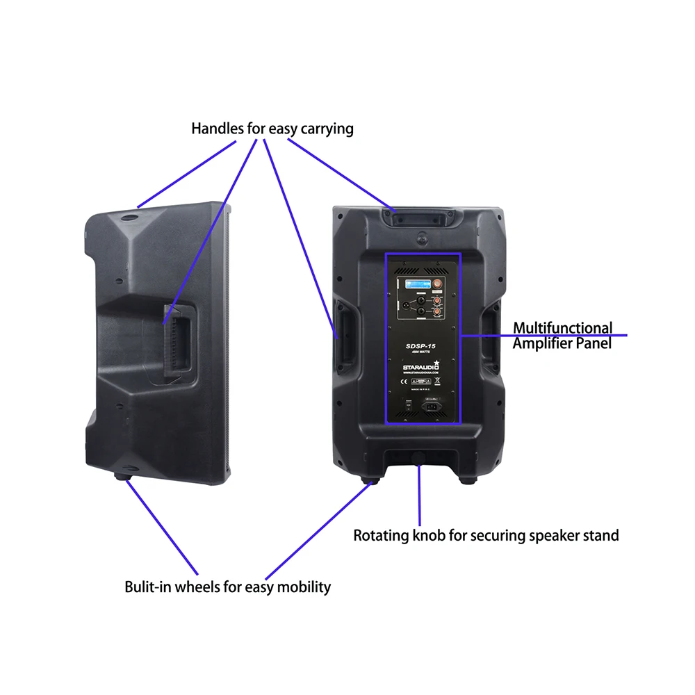 Product Name: STARAUDIO 15 بوصة 4 أوم 4500 واط PA DJ DSP نشط المرحلة كاريوكي سماعة كهربائية نظام 2CH UHF سماعة لاسلكية ميكروفون SDSP-15