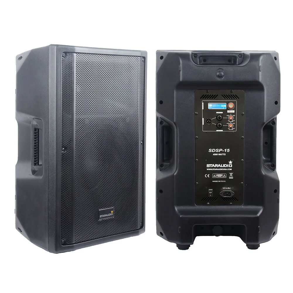 Product Name: STARAUDIO المزدوج 15 بوصة DSP نشط 4500 واط بالطاقة PA ديسكو مكبرات الصوت المرحلة DJ تقف 4CH اللاسلكية UHF ميكروفون سماعة الرأس SDSP-15