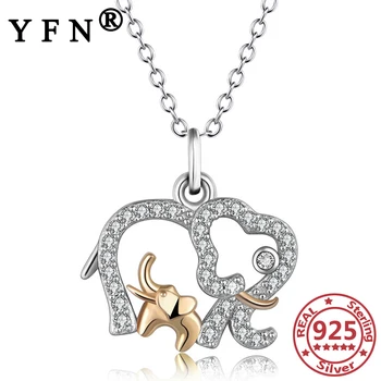 Special Offer YFN 925 فضة الاسترليني أمي والطفل الفيلة قلادة قلادة مكعب الزركون الفضة 925 مجوهرات فضة سلسلة المرأة هدية عيد الأم Discount 0% Today!