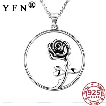 Special Offer YFN 925 فضة قلادة الورد دائرة قلادة بحلية متدلية على شكل وردة 925 الفضة سلسلة المرأة مجوهرات عيد الأم هدية أمي Discount 0% Today!