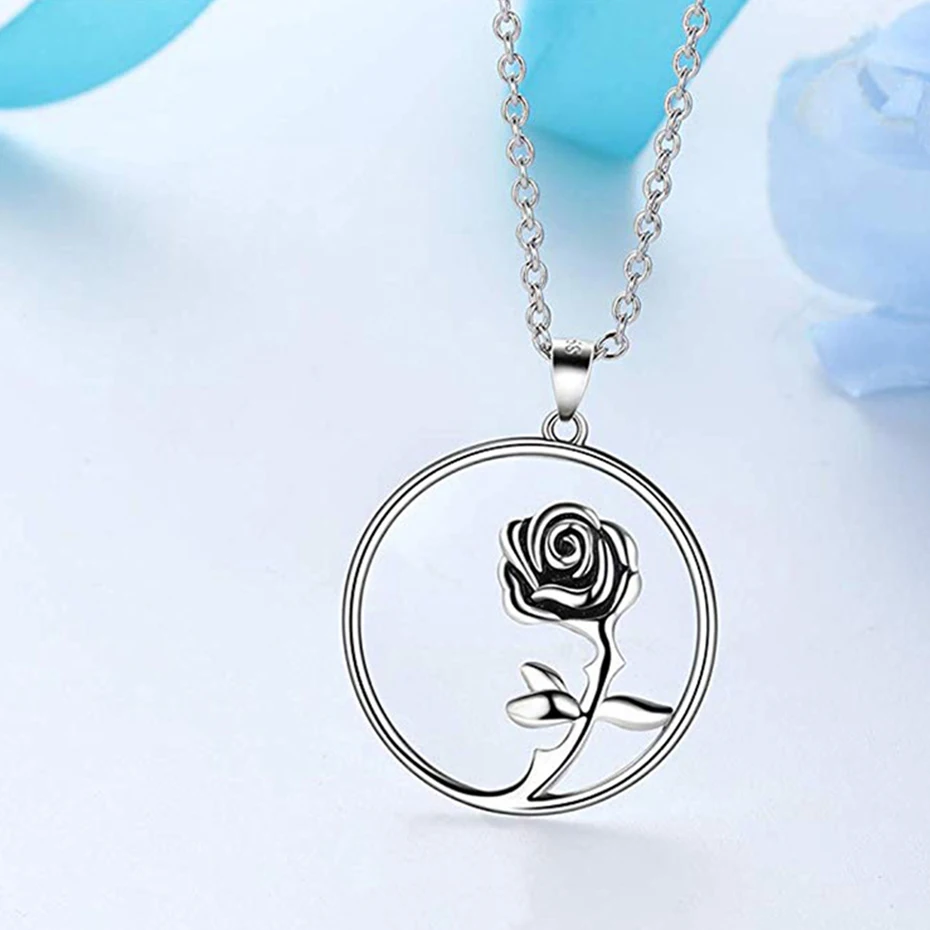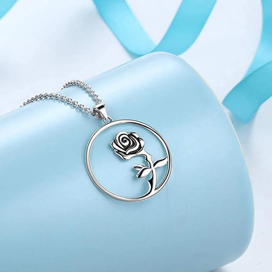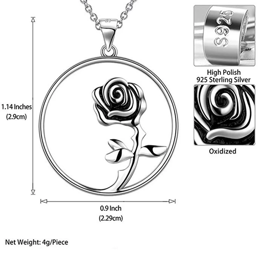 Product Name: YFN 925 فضة قلادة الورد دائرة قلادة بحلية متدلية على شكل وردة 925 الفضة سلسلة المرأة مجوهرات عيد الأم هدية أمي