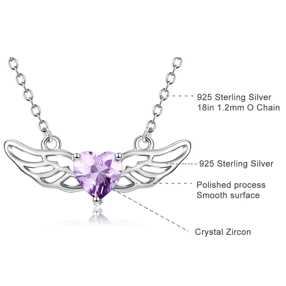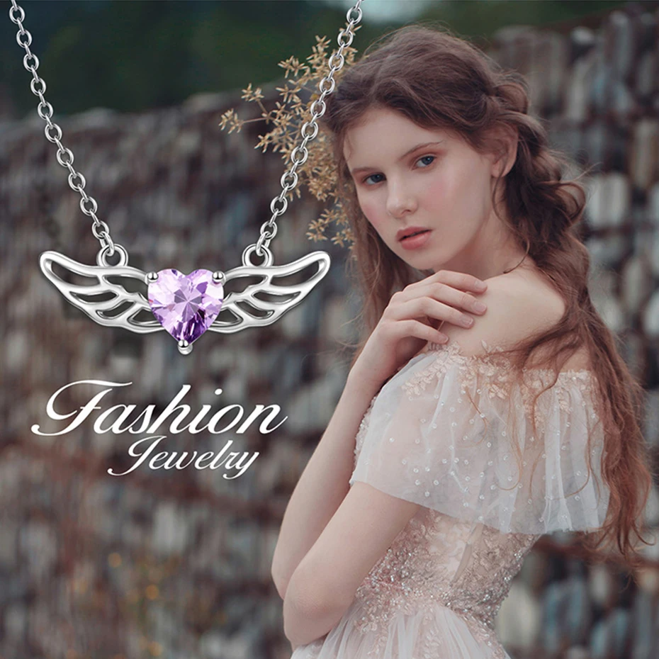 Product Name: YFN 925 الاسترليني قلادة فضية الملاك الجناح الأرجواني كريستال عقد من حجر الياقوت قلادة فضية 925 مجوهرات امرأة هدية عيد الحب