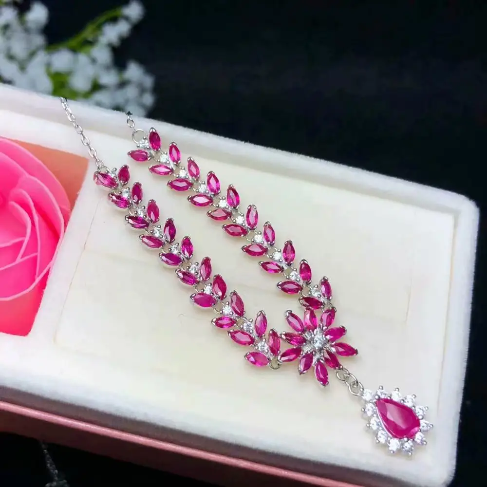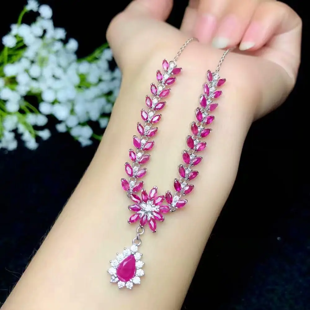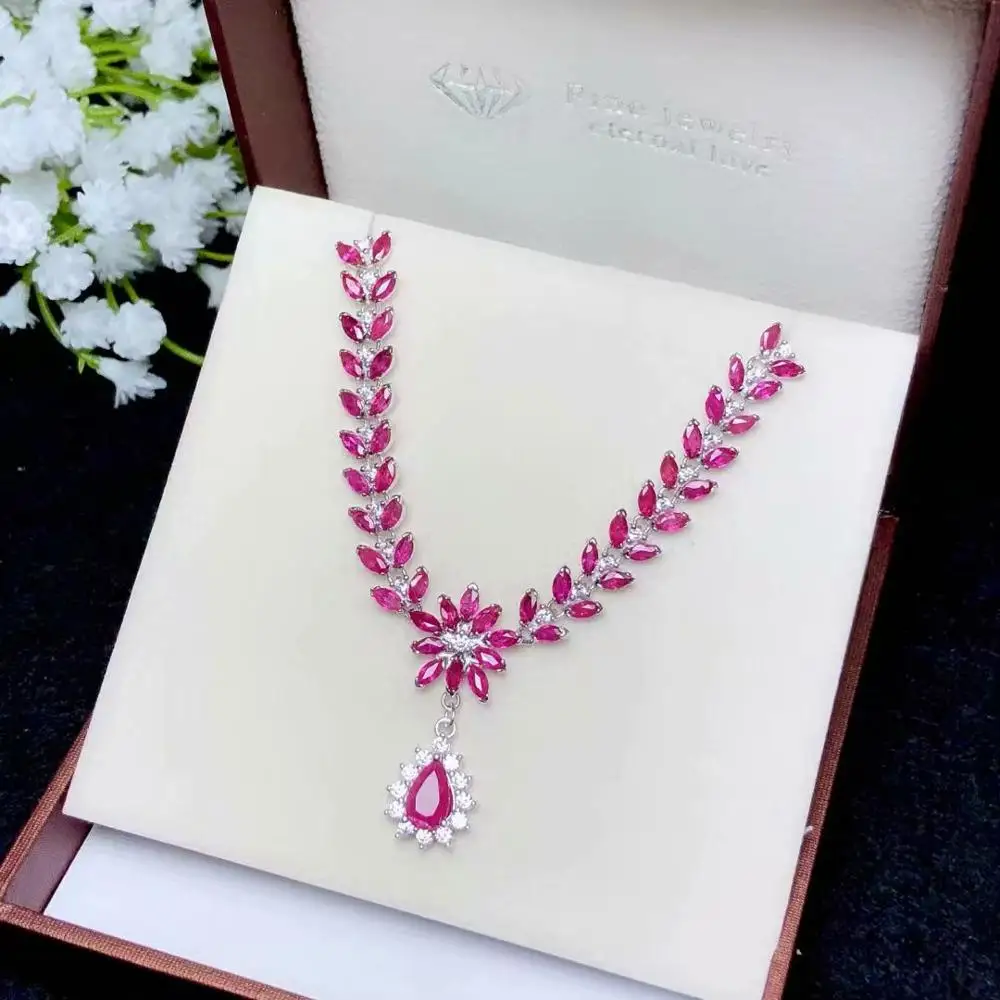 Product Name: قلادة فاخرة مرصعة بالأحجار الكريمة باللون الأحمر الطبيعي من الياقوت للنساء مناسبة لأعياد الميلاد أو الذكرى السنوية أو للحفلات أو هدايا جميل...