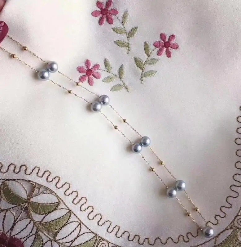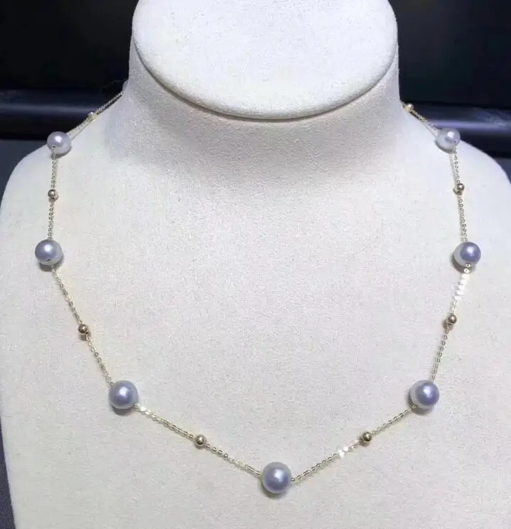 Product Name: أسعار الجملة ^ ^ جديد 7.5-8 مللي متر الطبيعية ساوثسي أكويا اللؤلؤ المعلقات O سلسلة 18 الصلبة Golg