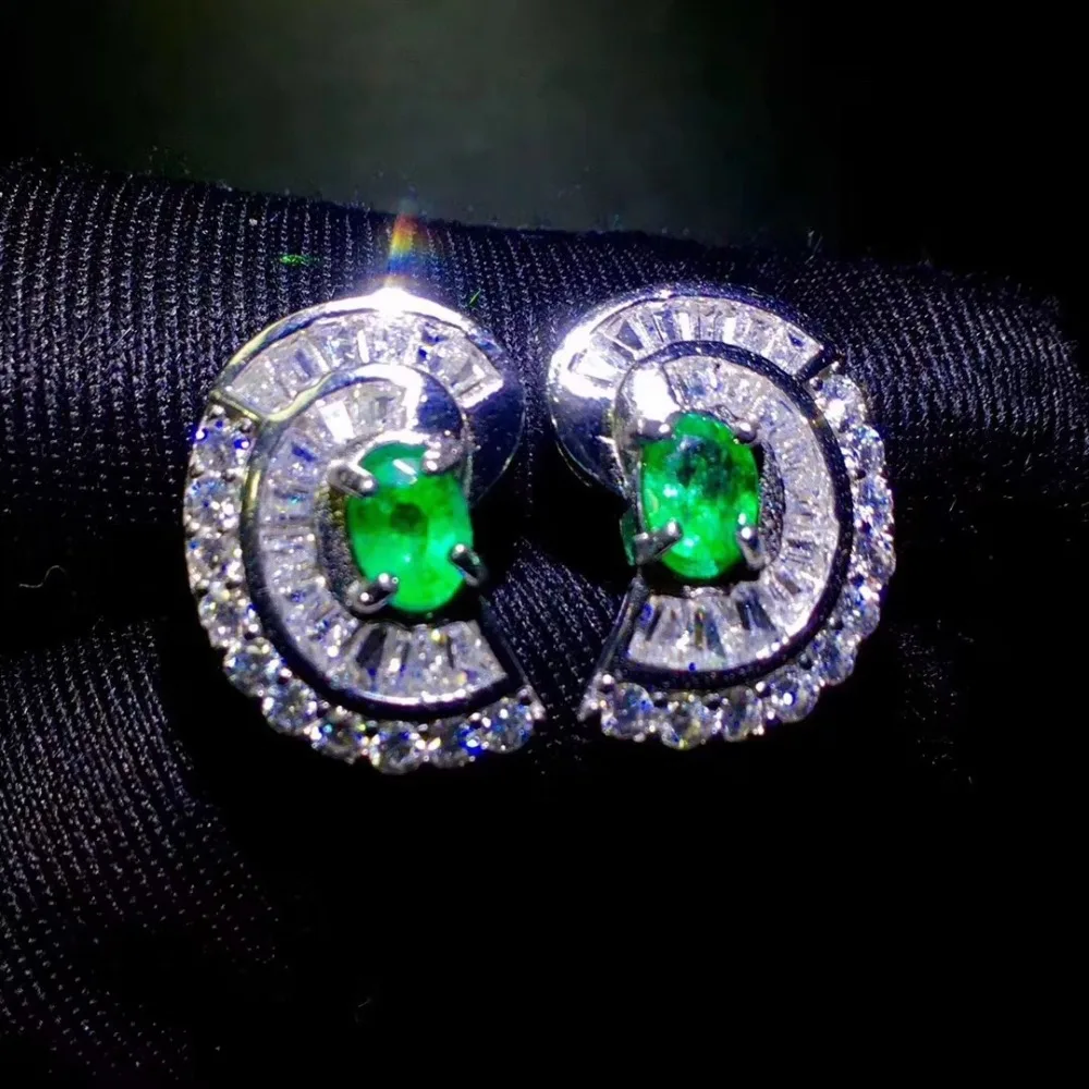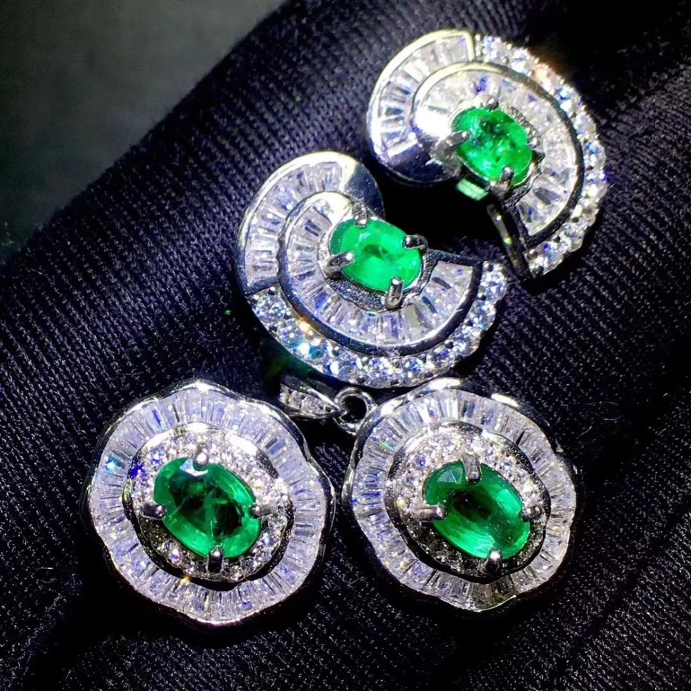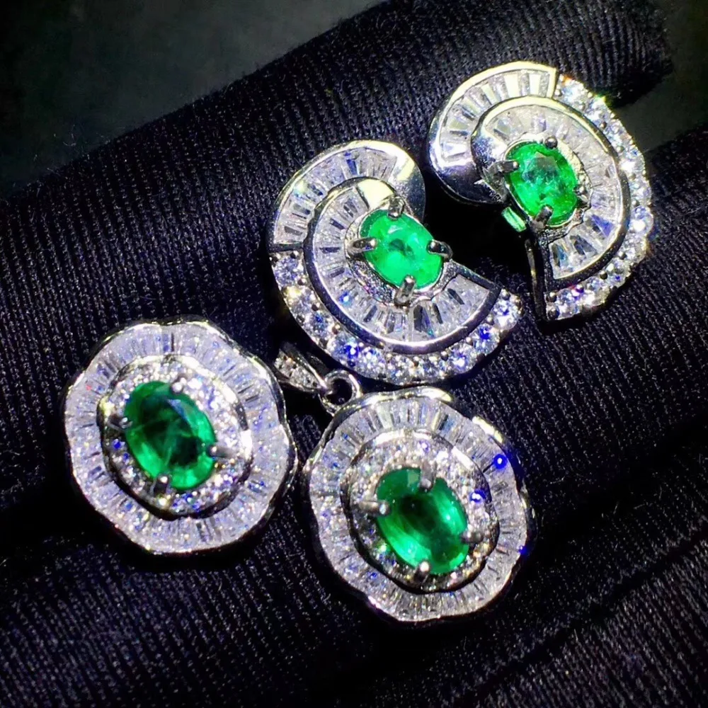 Product Name: طقم مجوهرات الزمرد الطبيعية والحقيقية الطبيعية ريال الزمرد 925 فضة 1 قطعة قلادة ، 1 قطعة خاتم ، 2 قطعة القرط