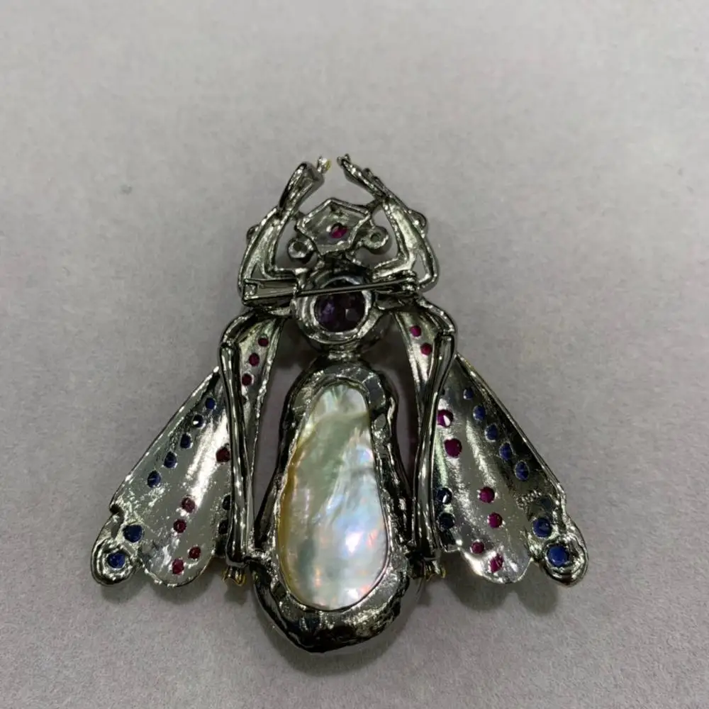 Product Name: الباروك لؤلؤ طبيعي من المياه النقية بروش قلادة مزدوجة استخدام 925 فضة الحشرات بروش شبه حجر كريم 7*6 سنتيمتر الموضة