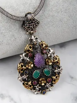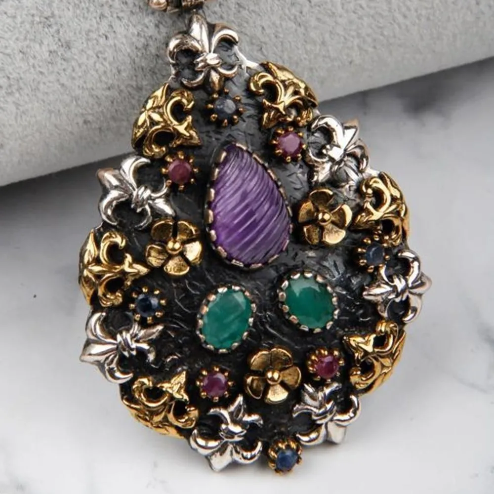Special Offer جمشت-روبي-الزمرد-الياقوت صنعة خاصة 925 قلادة فضية الاسترليني Discount 0% Today!