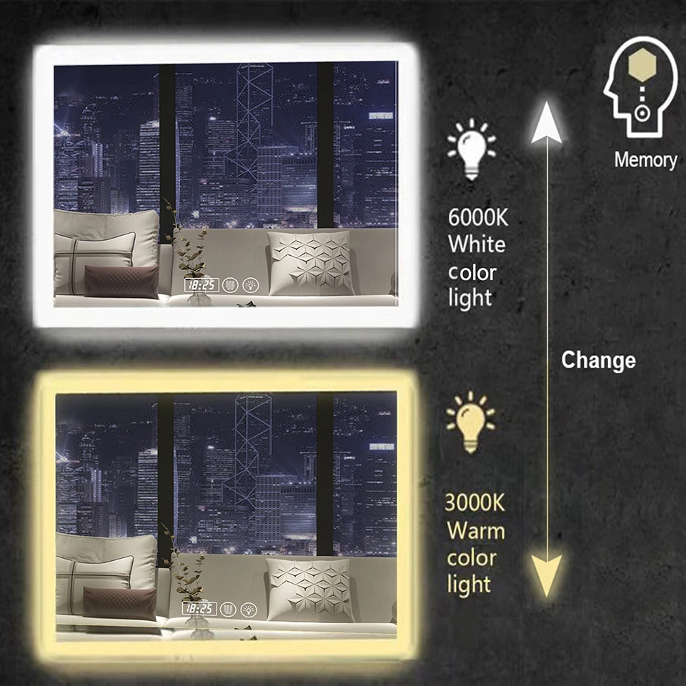 Product Name: دروب شيبينغ LED الذكية مرآة حمام عالية التجويف قابل للتعديل الدافئة والأبيض ضوء بلوتوث مكافحة الضباب عكس الضوء ذاكرة اللمس