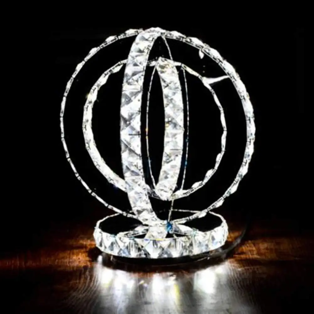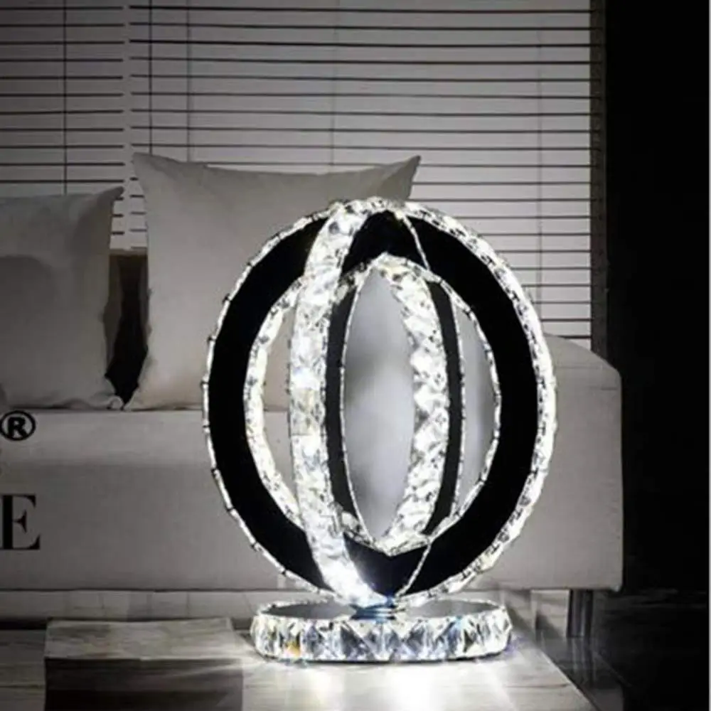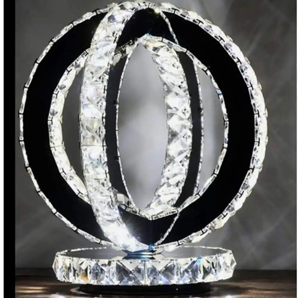 Product Name: الحديثة الجدول مصباح LED الماس كريستال إضاءة غرفة النوم حلقة مستديرة بجانب لمبة مكتب تركيبات K9 الكريستال دراسة مكتب مصباح غرفة النوم