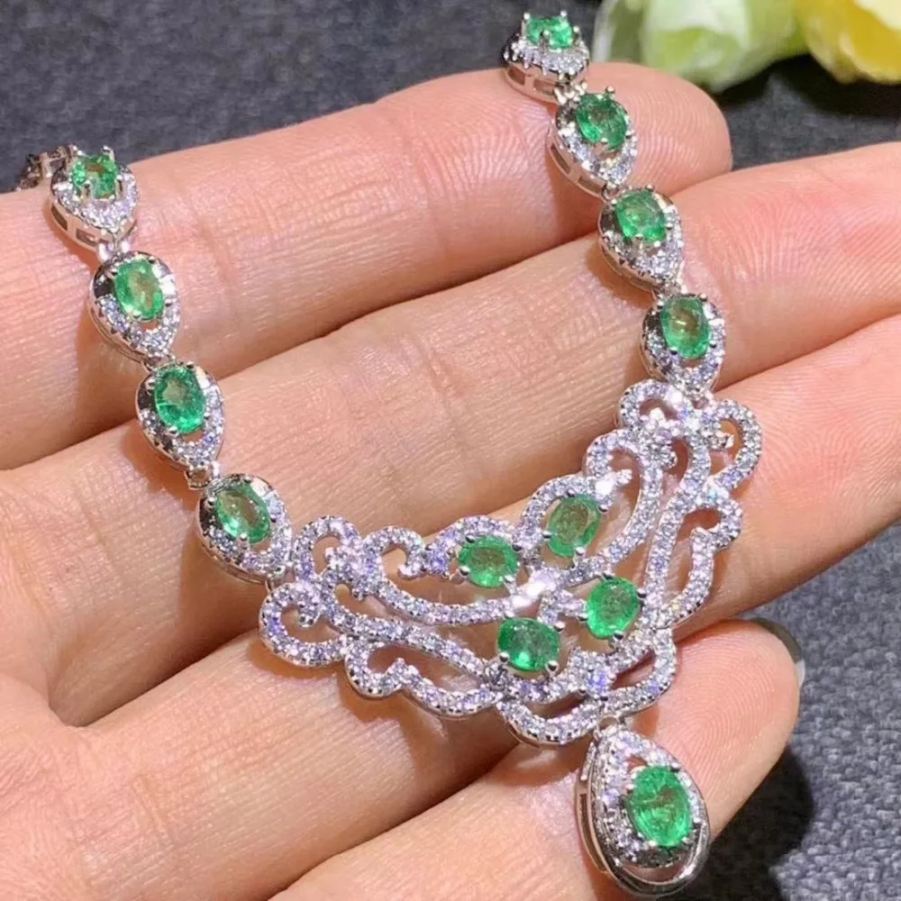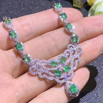 Product Name: الطبيعي الأخضر الزمرد قلادة قلادة S925 الفضة الطبيعية الأحجار الكريمة قلادة الأزياء Bullhead الهندسة امرأة حزب هدية المجوهرات