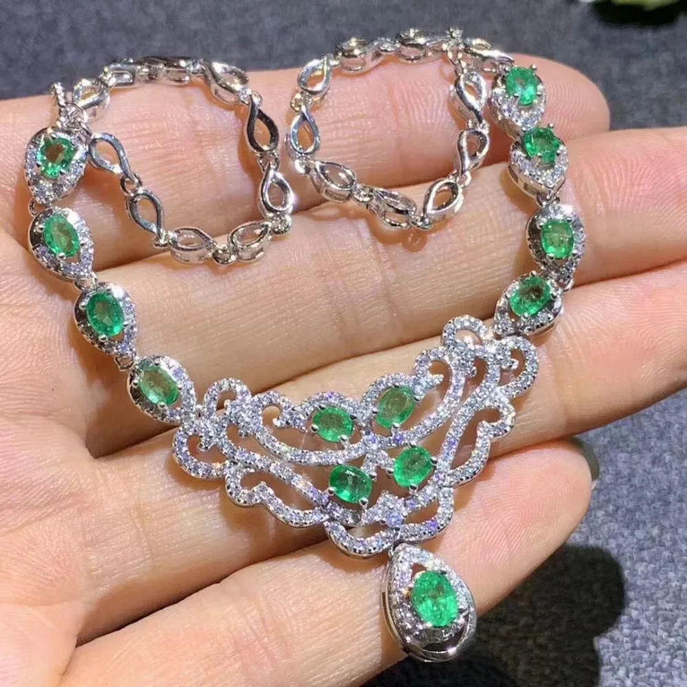 Special Offer الطبيعي الأخضر الزمرد قلادة قلادة S925 الفضة الطبيعية الأحجار الكريمة قلادة الأزياء Bullhead الهندسة امرأة حزب هدية المجوهرات Discount 18% Today!