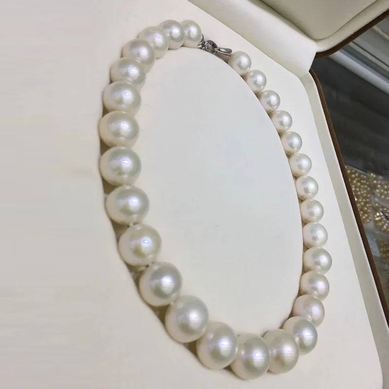 Product Name: Sinya جديد وصول عالية جدا بريق نظيفة 13-15 مللي متر الكمال الجولة لؤلؤ المياه العذبة ستراند قلادة المختنقون للنساء أمي السيدات