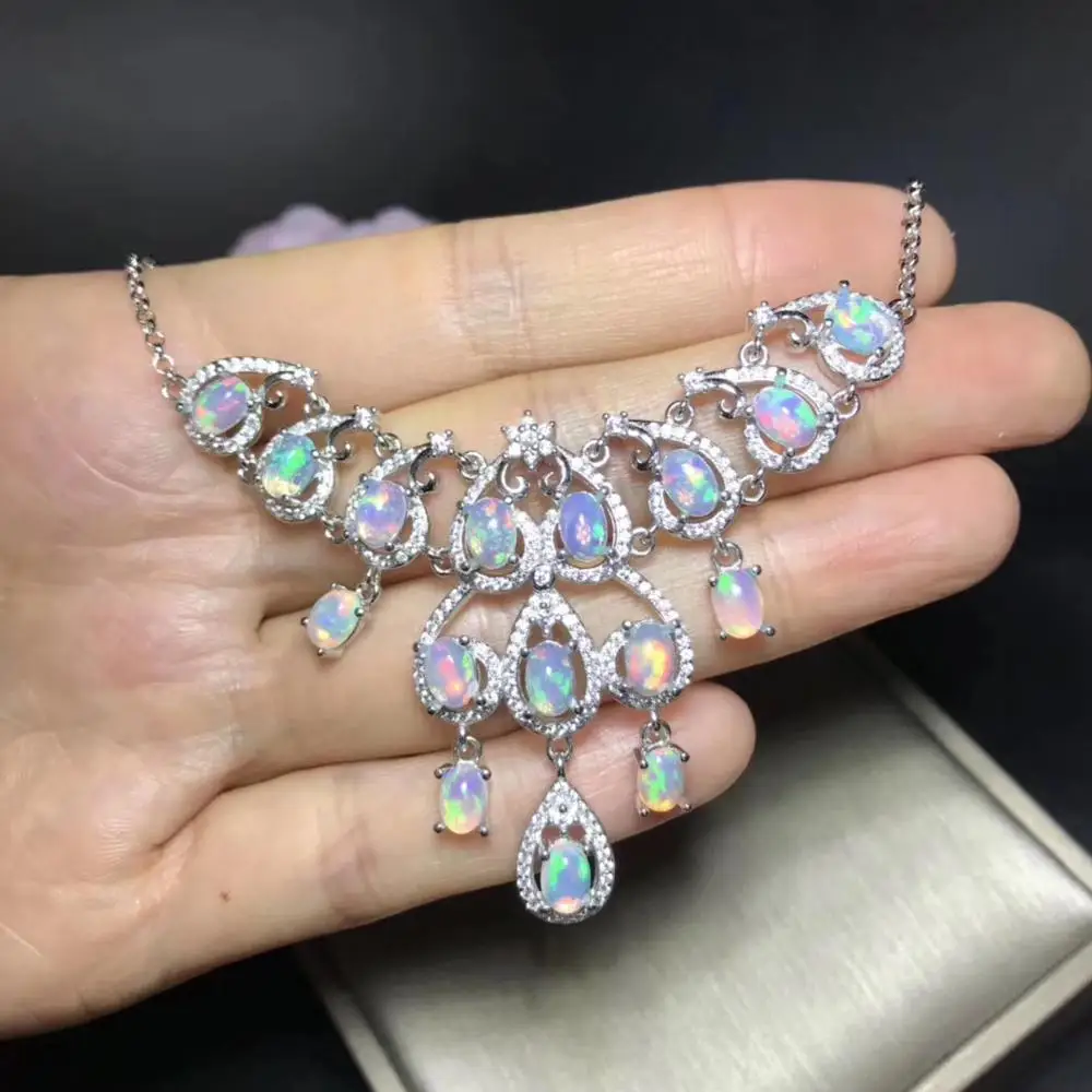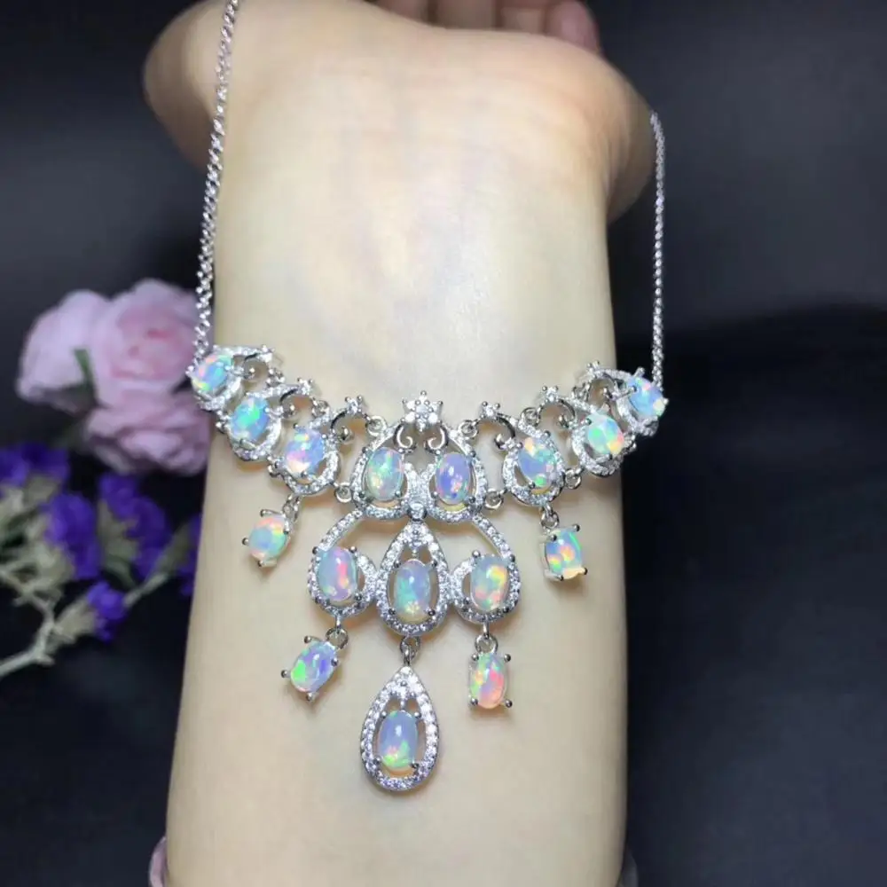 Product Name: أنيقة المشاركة هدية أفضل نوعية فاخرة أوبال قلادة قلادة 100% الطبيعية الوردي العقيق المعلقات 925 الاسترليني مجوهرات فضية