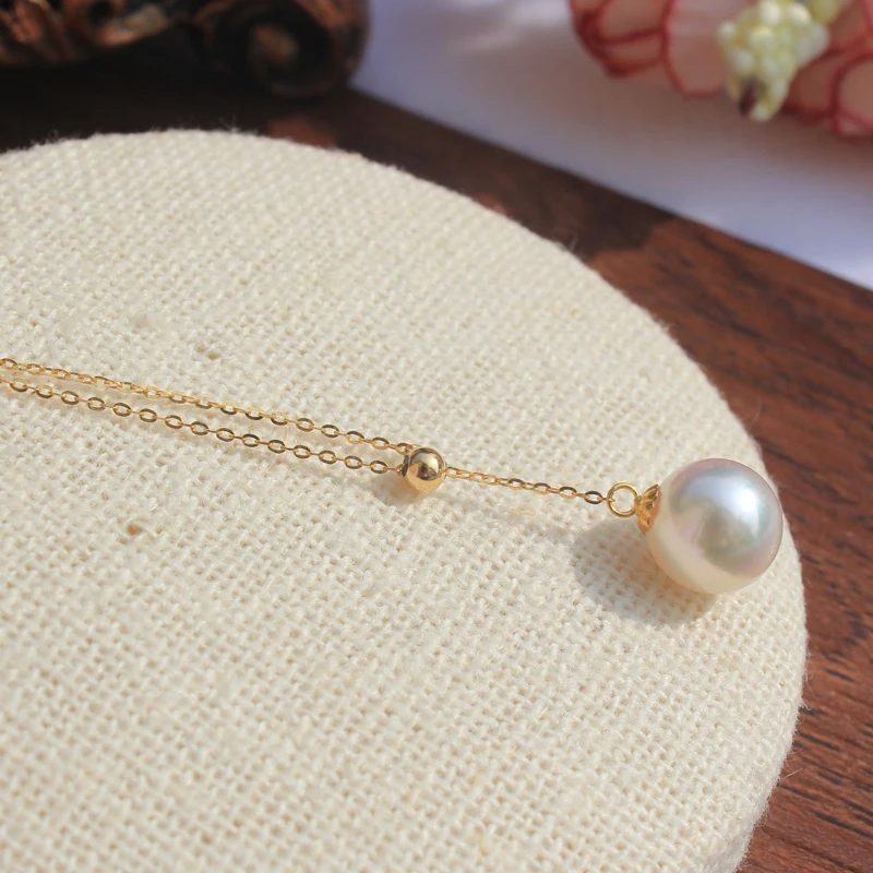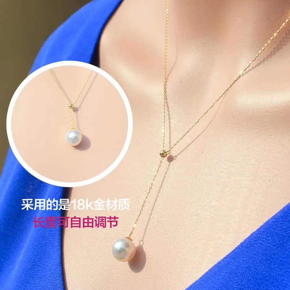 Special Offer غرامة مجوهرات الطبيعية أكويا مياه البحر اللؤلؤ قلادة غرامة مستديرة ، قابل للتعديل 18 K الذهب عقد قصير Discount 49% Today!