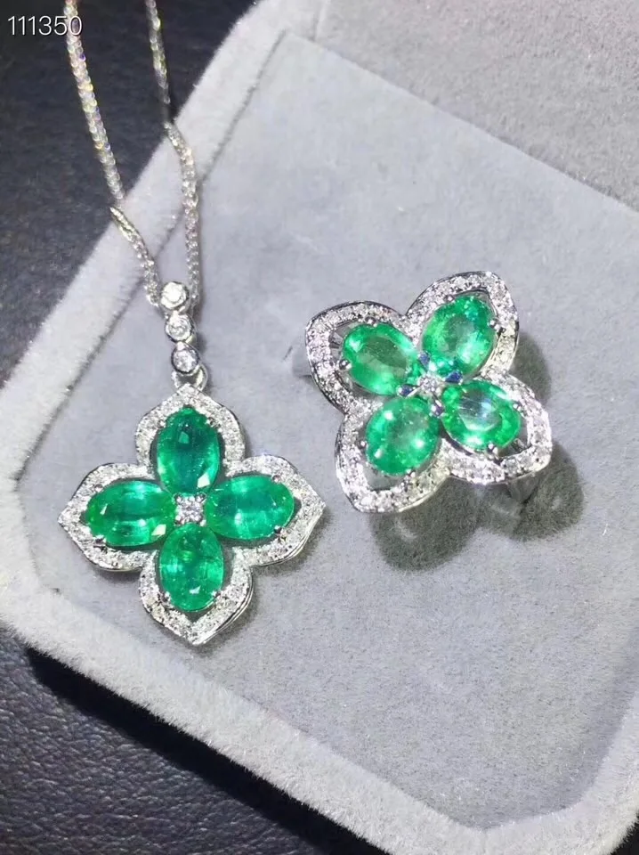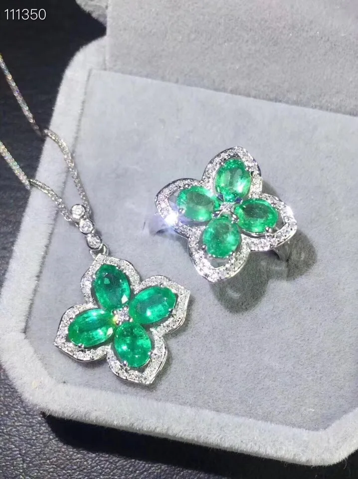Special Offer زهرة الطبيعية الزمرد طقم مجوهرات الطبيعية ريال الزمرد 925 فضة 1 قطعة قلادة ، 1 قطعة خاتم Discount 25% Today!