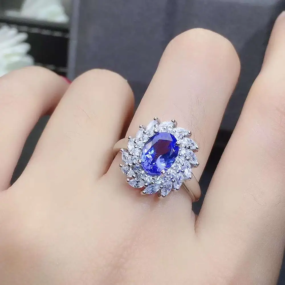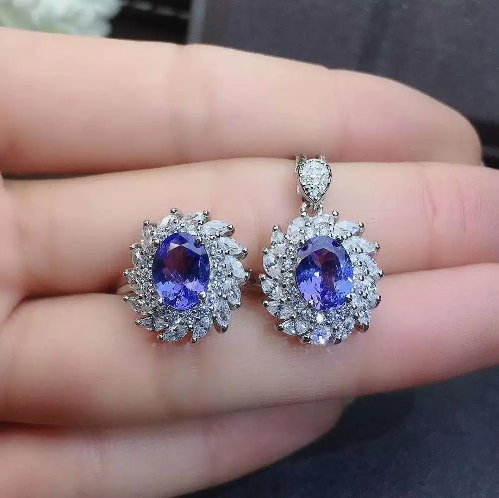 Product Name: ريال الطبيعية تنزانيت طقم مجوهرات ريال الطبيعية تنزانيت 925 فضة 1 قطعة قلادة ، 1 قطعة خاتم