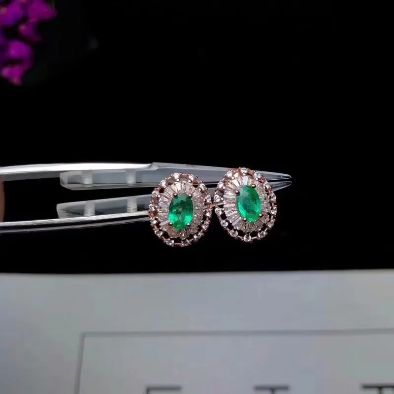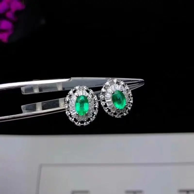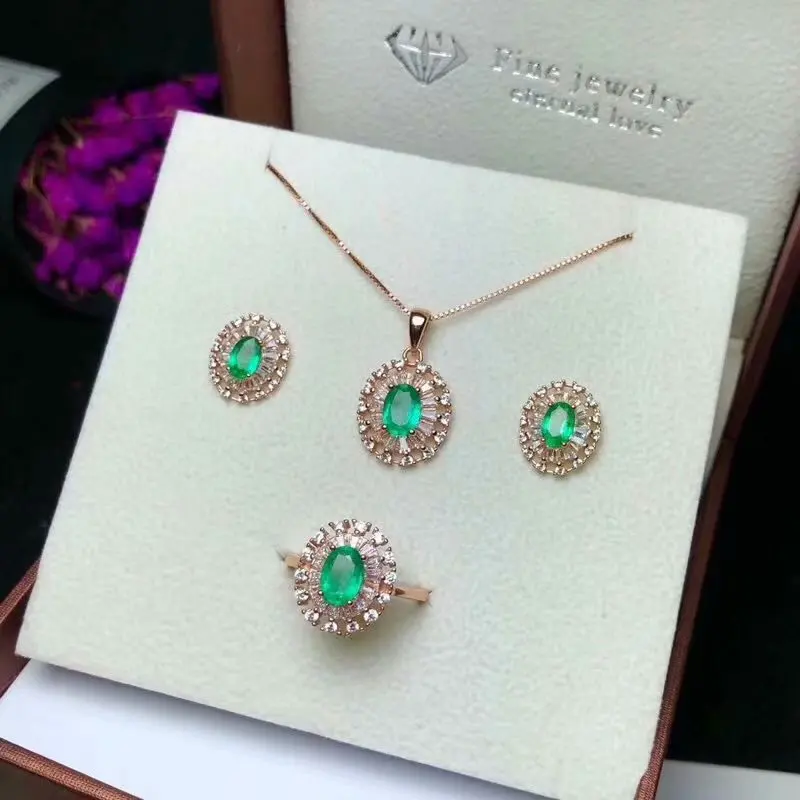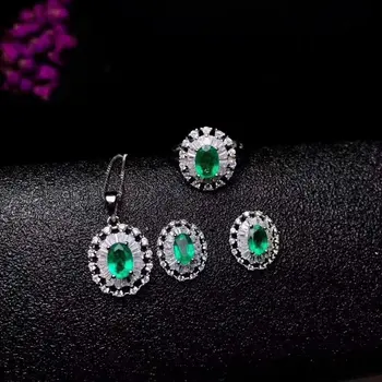 Product Name: 925 الفضة النقية مطعمة مع الأخضر الطبيعي الزمرد قلادة عصابة الأذن مربط الأحجار الكريمة الطبيعية مجوهرات امرأة الدعاوى حفلة هدية مجوهرات