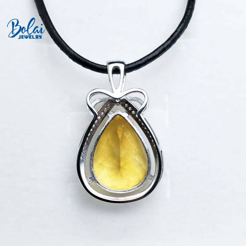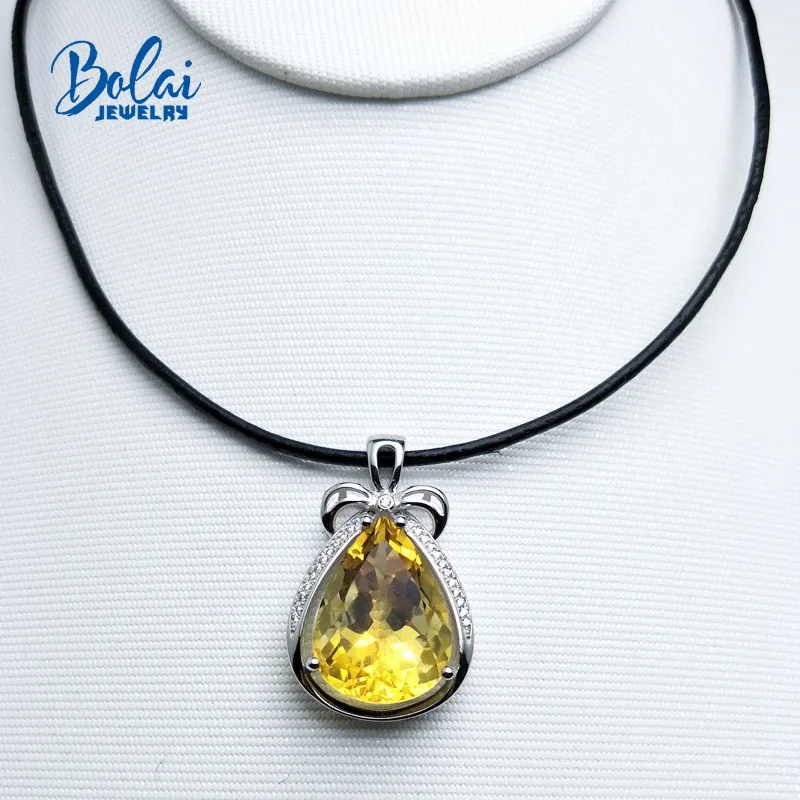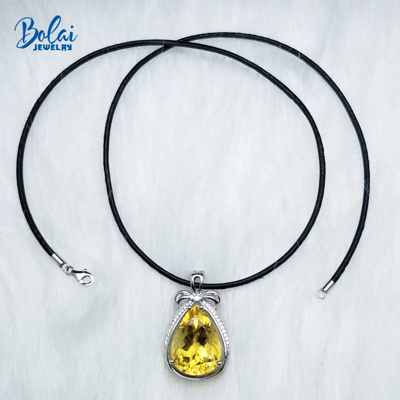 Special Offer Bolaijewelry ، Size17.65ct الكبير سيترين الطبيعية قلادة مع الجلود الحبل قلادة 925 الفضة النساء الذكرى الزفاف حزب هدية Discount 8% Today!