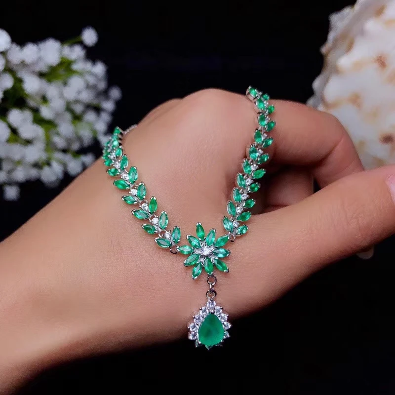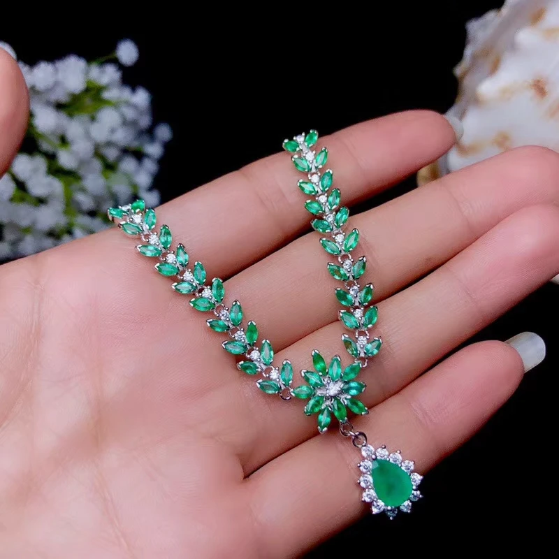 Special Offer KJJEAXCMY غرامة مجوهرات 925 فضة مطعمة الطبيعية الزمرد الإناث قلادة قلادة أنيقة دعم اختبار الساخن بيع Discount 22% Today!
