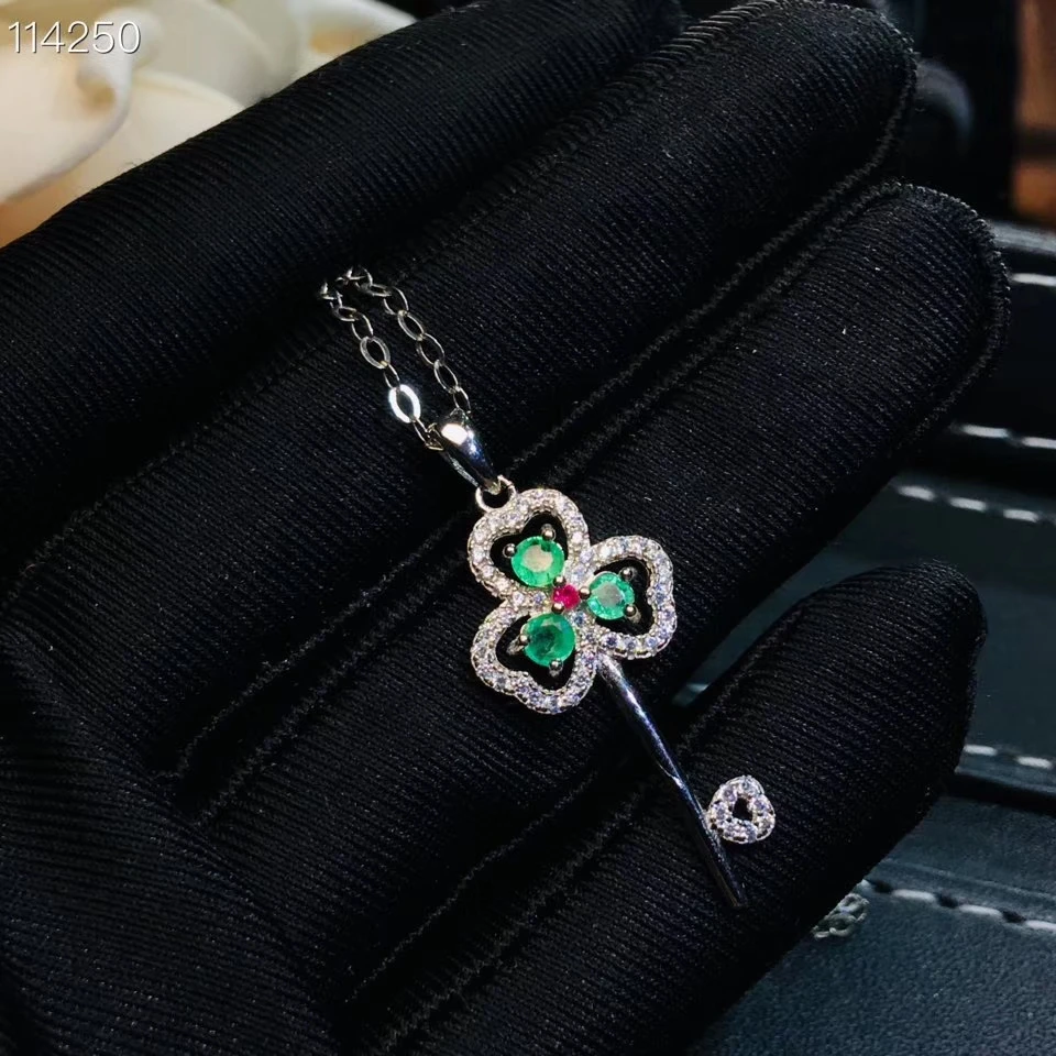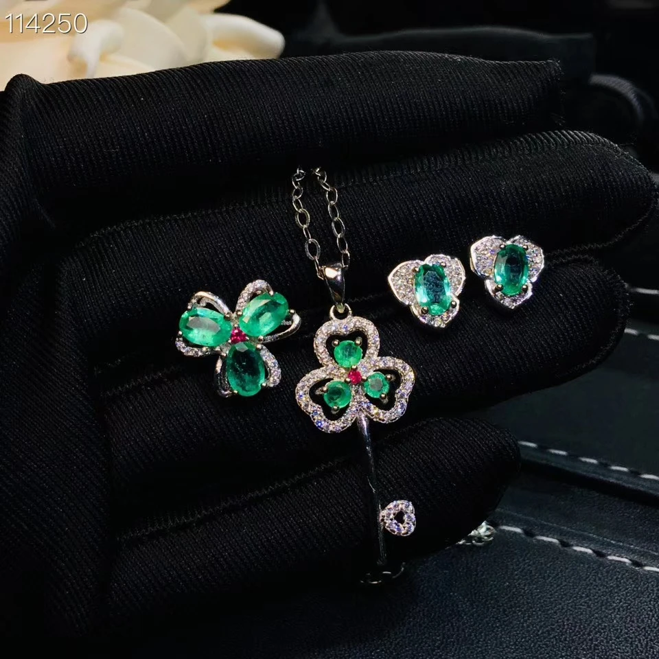 Product Name: الطبيعي الأخضر الزمرد قلادة عصابة الأقراط الأحجار الكريمة الطبيعية طقم مجوهرات S925 الفضة الأزياء مفتاح زهرة النساء حزب هدية مجوهرات