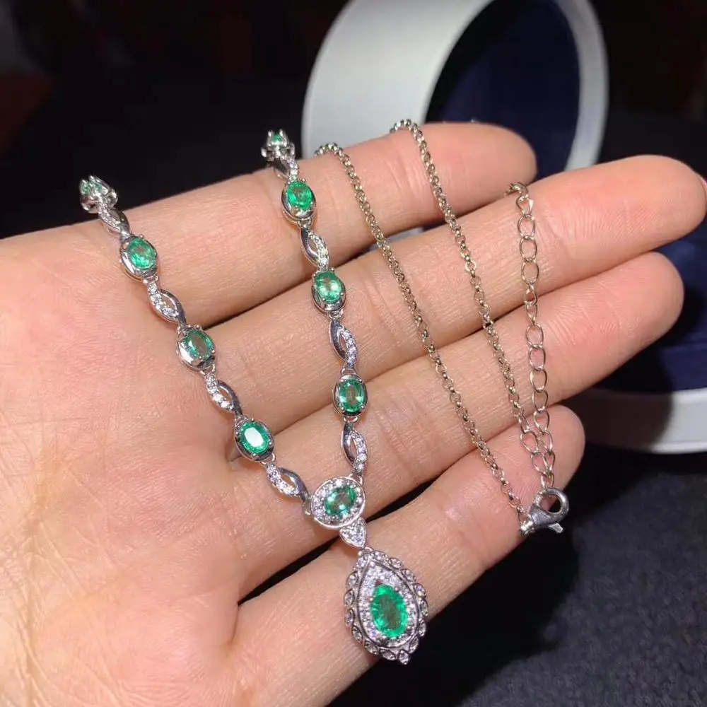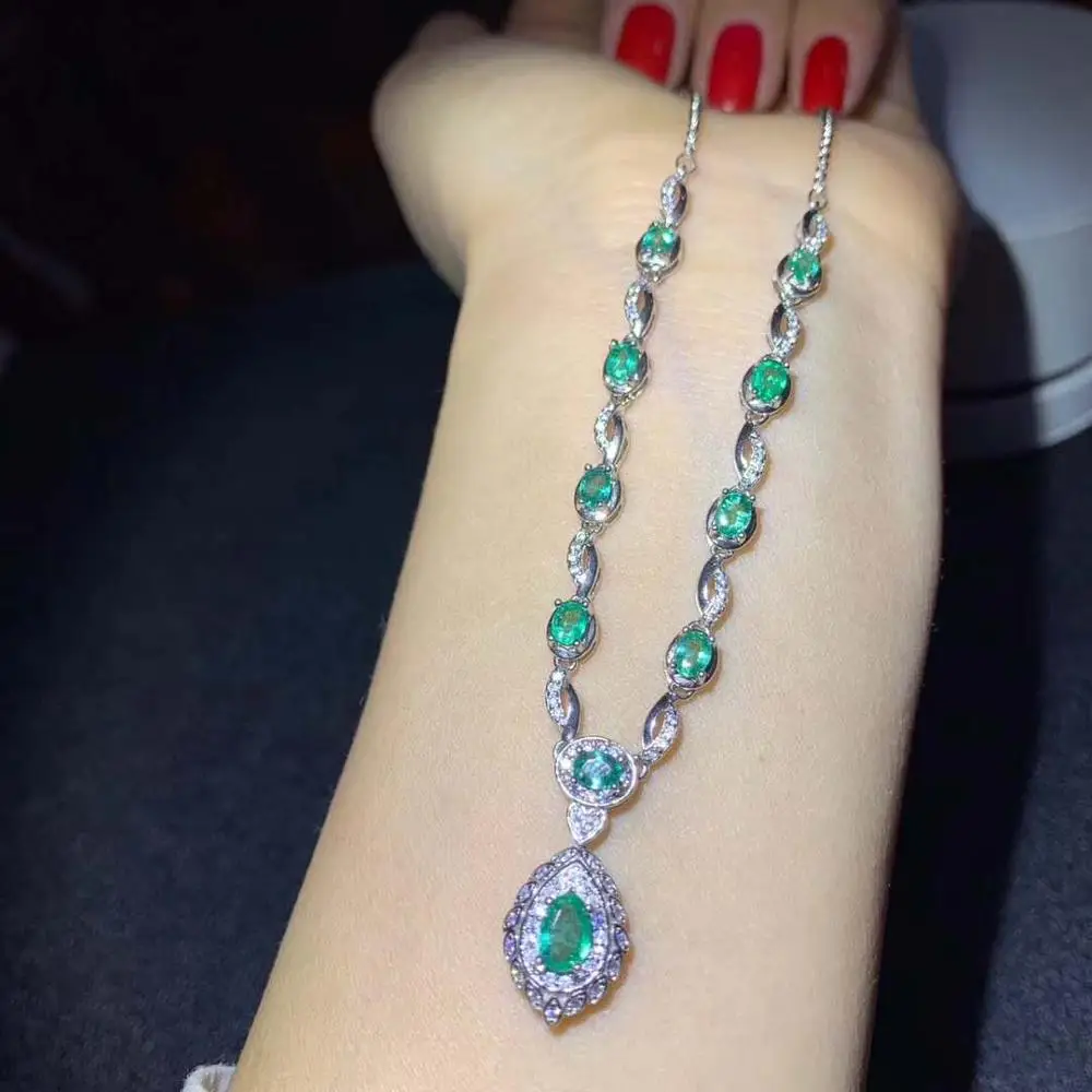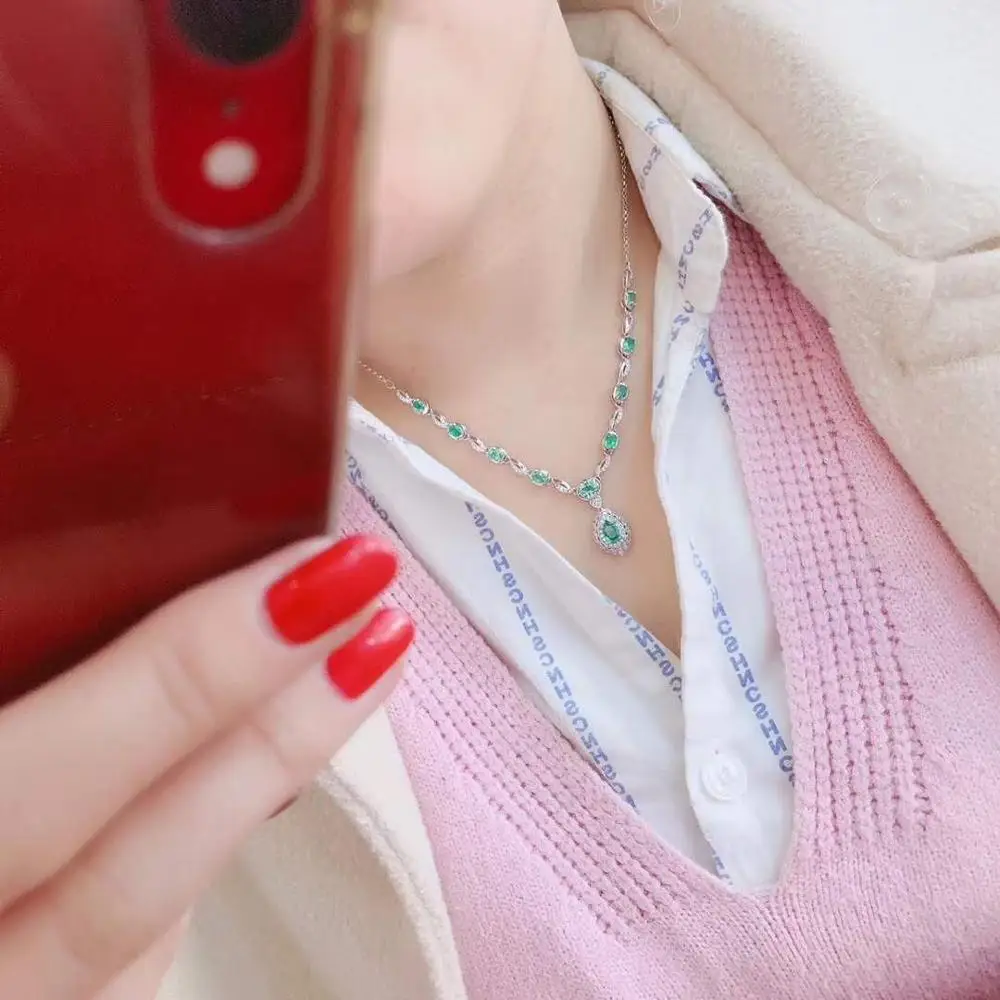 Product Name: قلادة الزمرد الطبيعية والحقيقية الصلبة S925 فضة الزمرد قلادة للنساء اللون جوهرة StoneFine مجوهرات