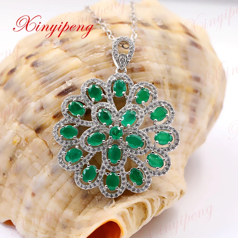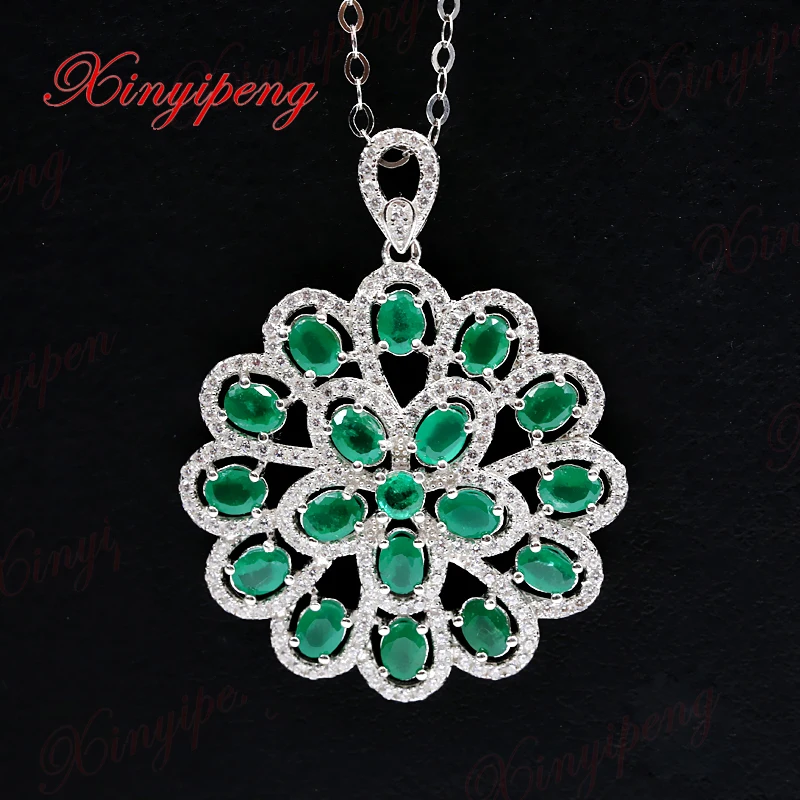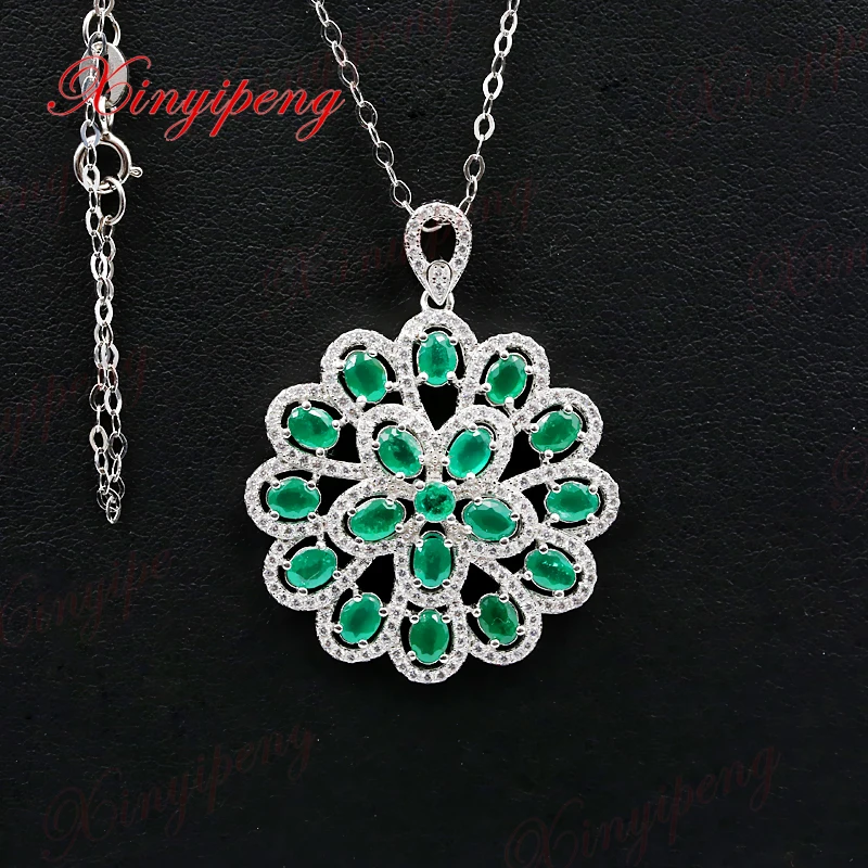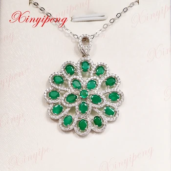 Special Offer Xinyipeng925 الفضة مطعمة الطبيعية الزمرد قلادة للنساء ل عباد الشمس شكل تصميم جميل Discount 12% Today!